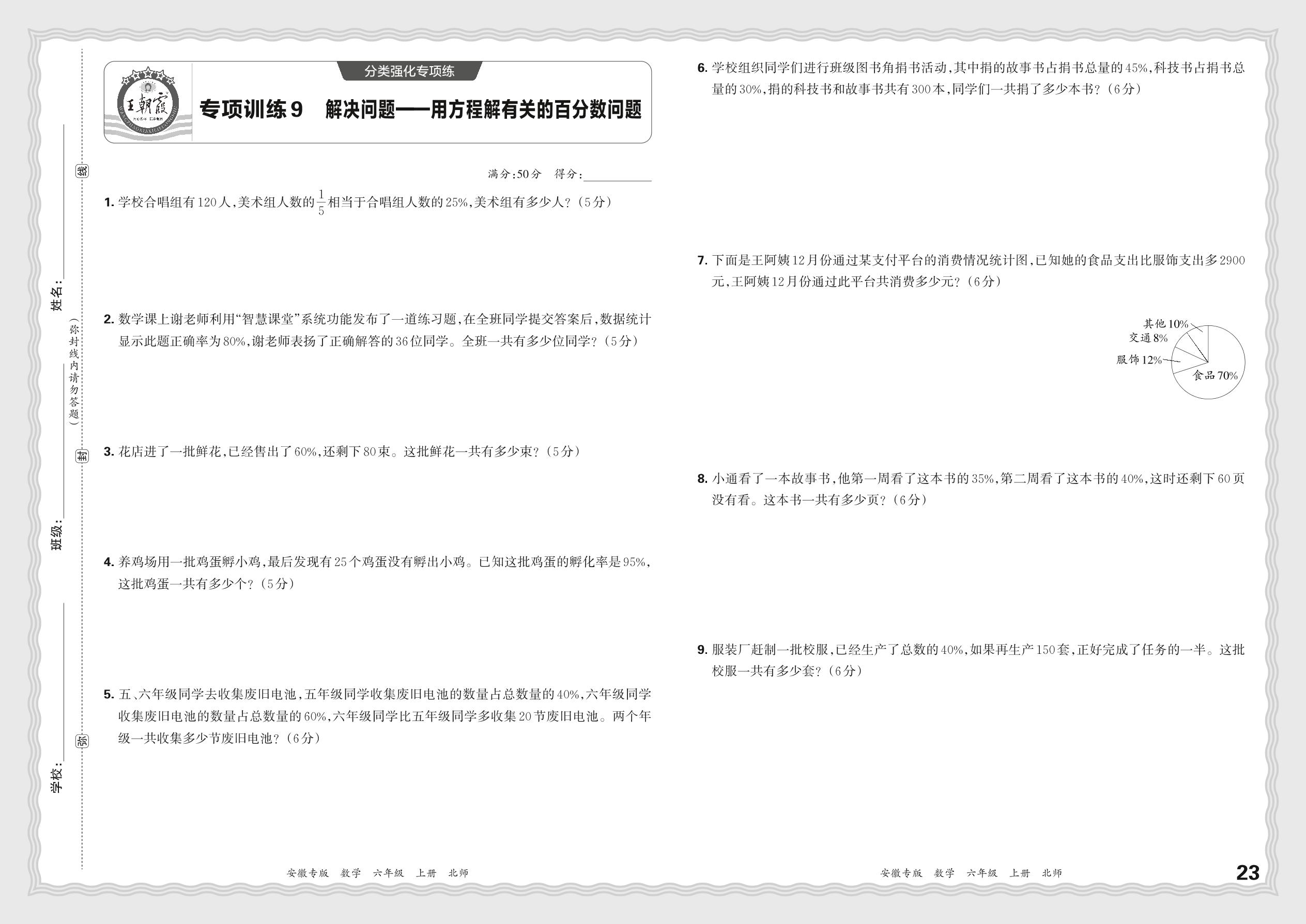 2023秋上册六年级数学北师版 期末专项·解决问题——用方程解有关的百分数问题【9】