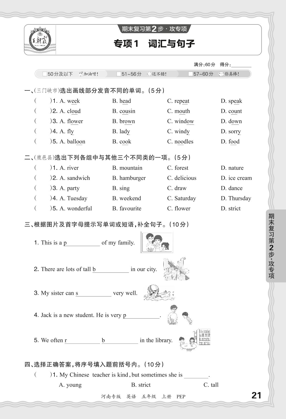 2023秋上册五年级英语人教PEP版 期末专项卷·词汇与句子【1】