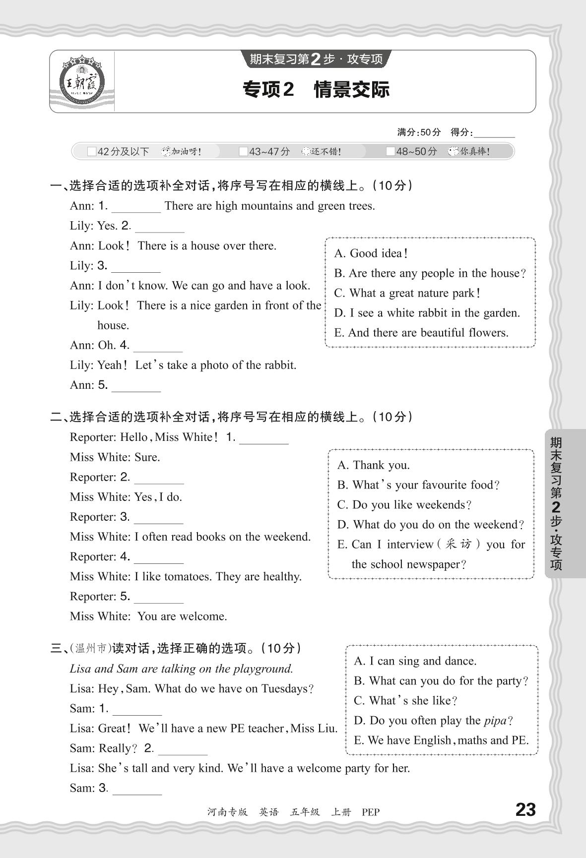 2023秋上册五年级英语人教PEP版 期末专项卷·情景交际【2】