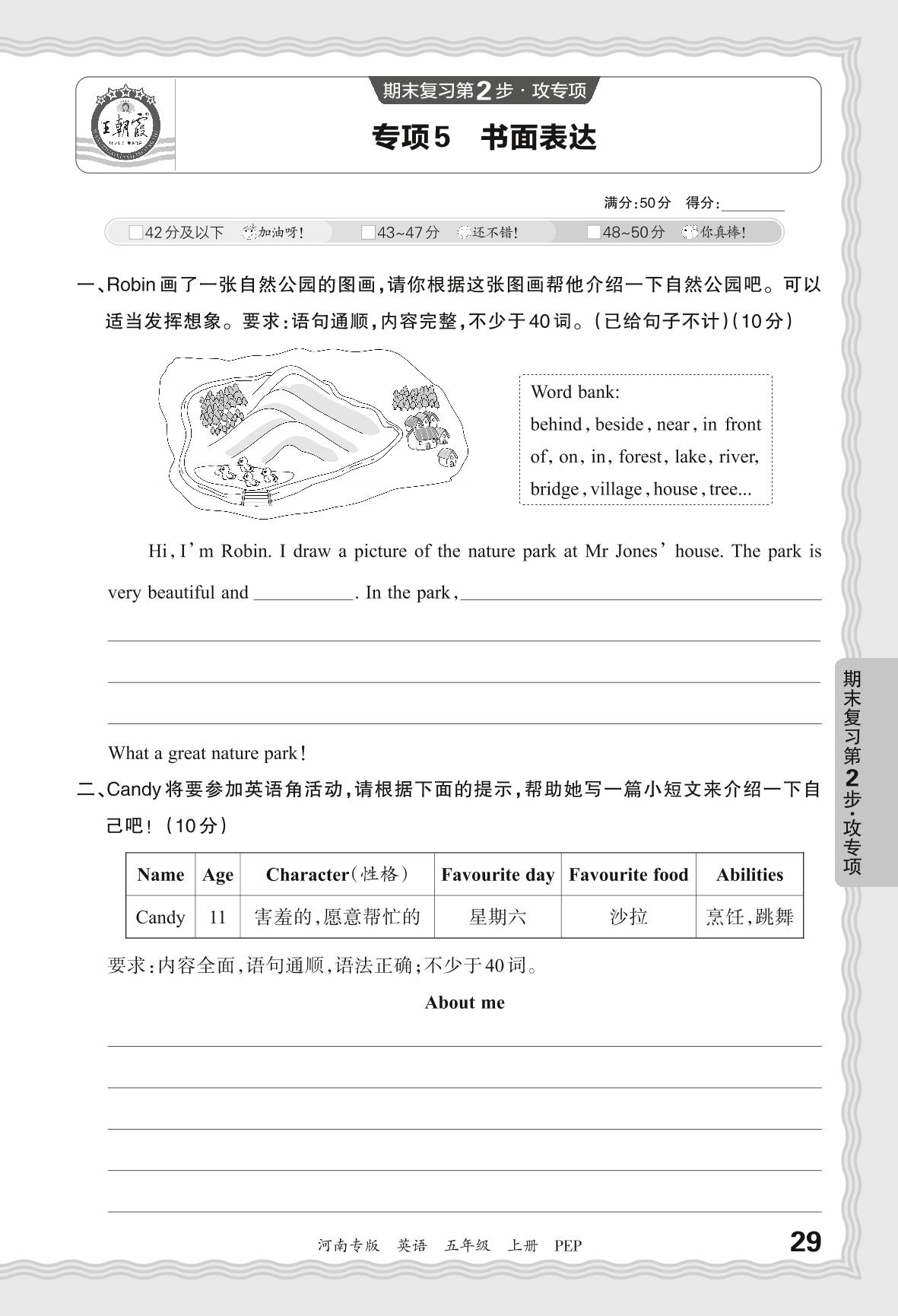 2023秋上册五年级英语人教PEP版 期末专项卷·书面表达【5】