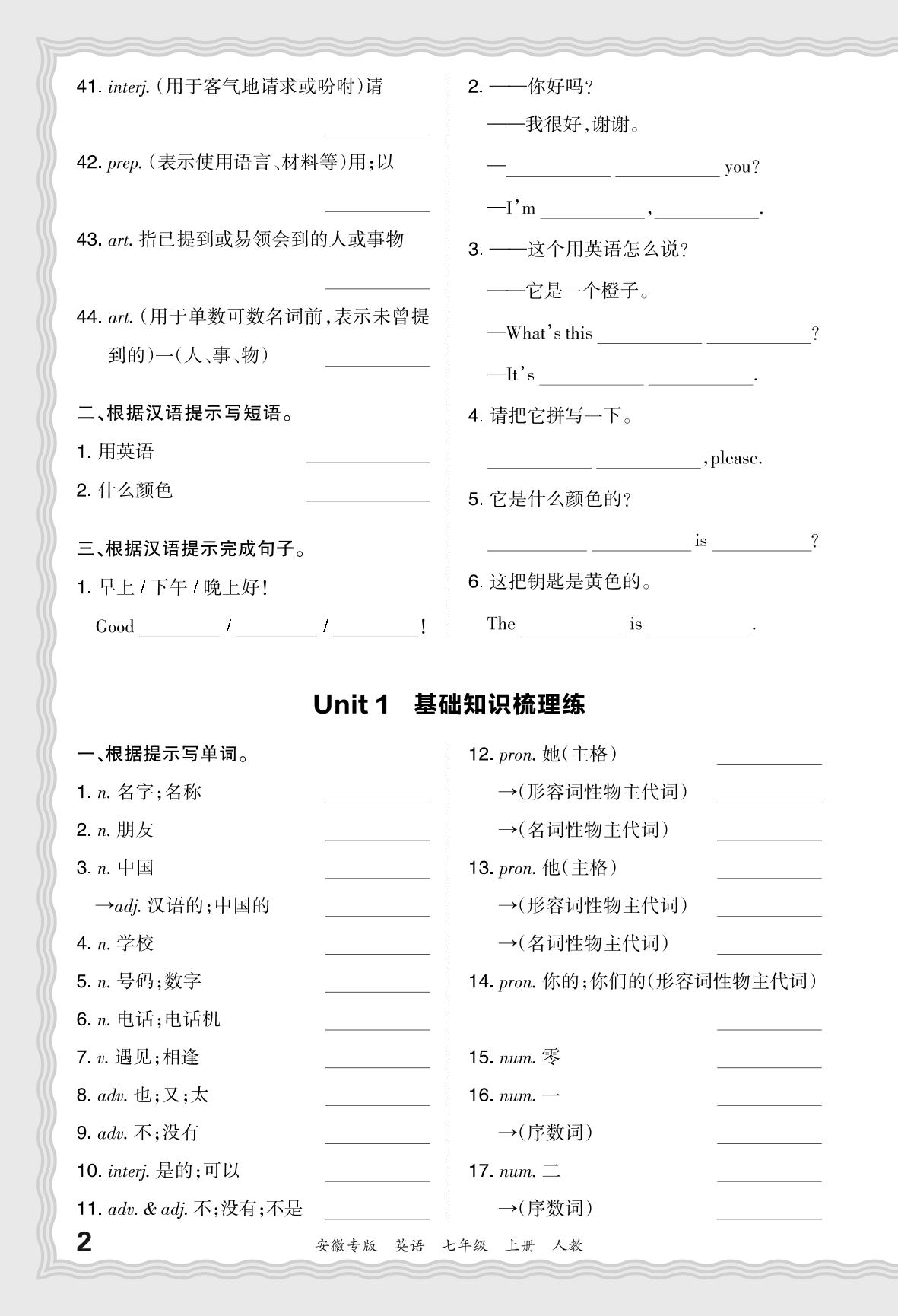 2023秋上册七年级英语人教版 期末过课本·Unit 1 基础知识梳理练