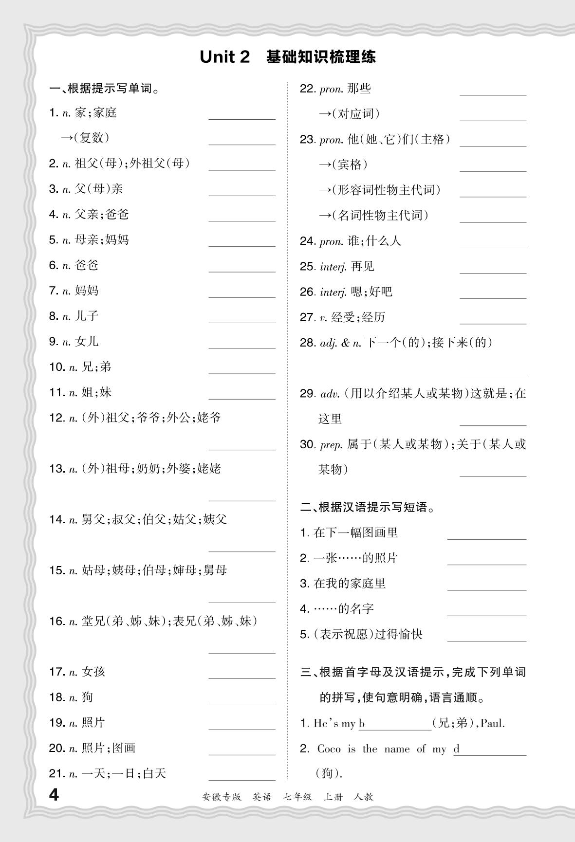 2023秋上册七年级英语人教版 期末过课本·Unit 2 基础知识梳理练