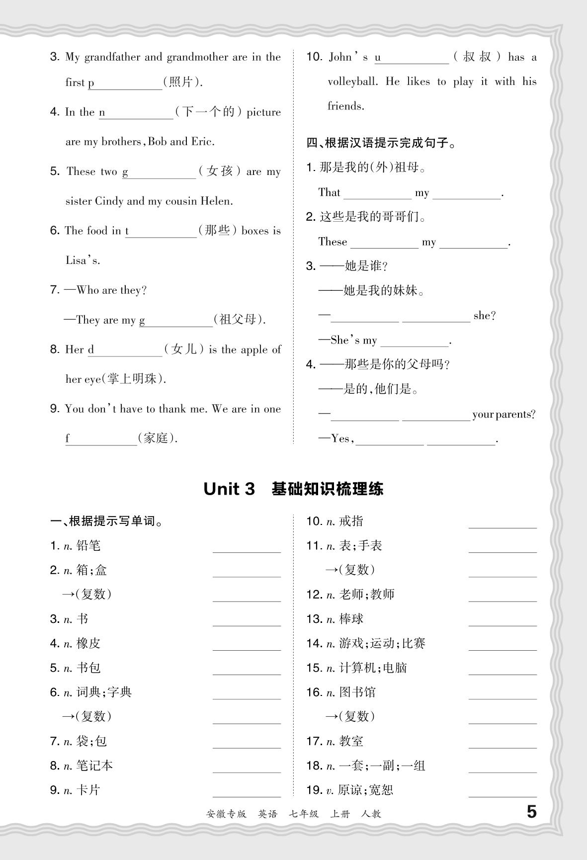 2023秋上册七年级英语人教版 期末过课本·Unit 3 基础知识梳理练
