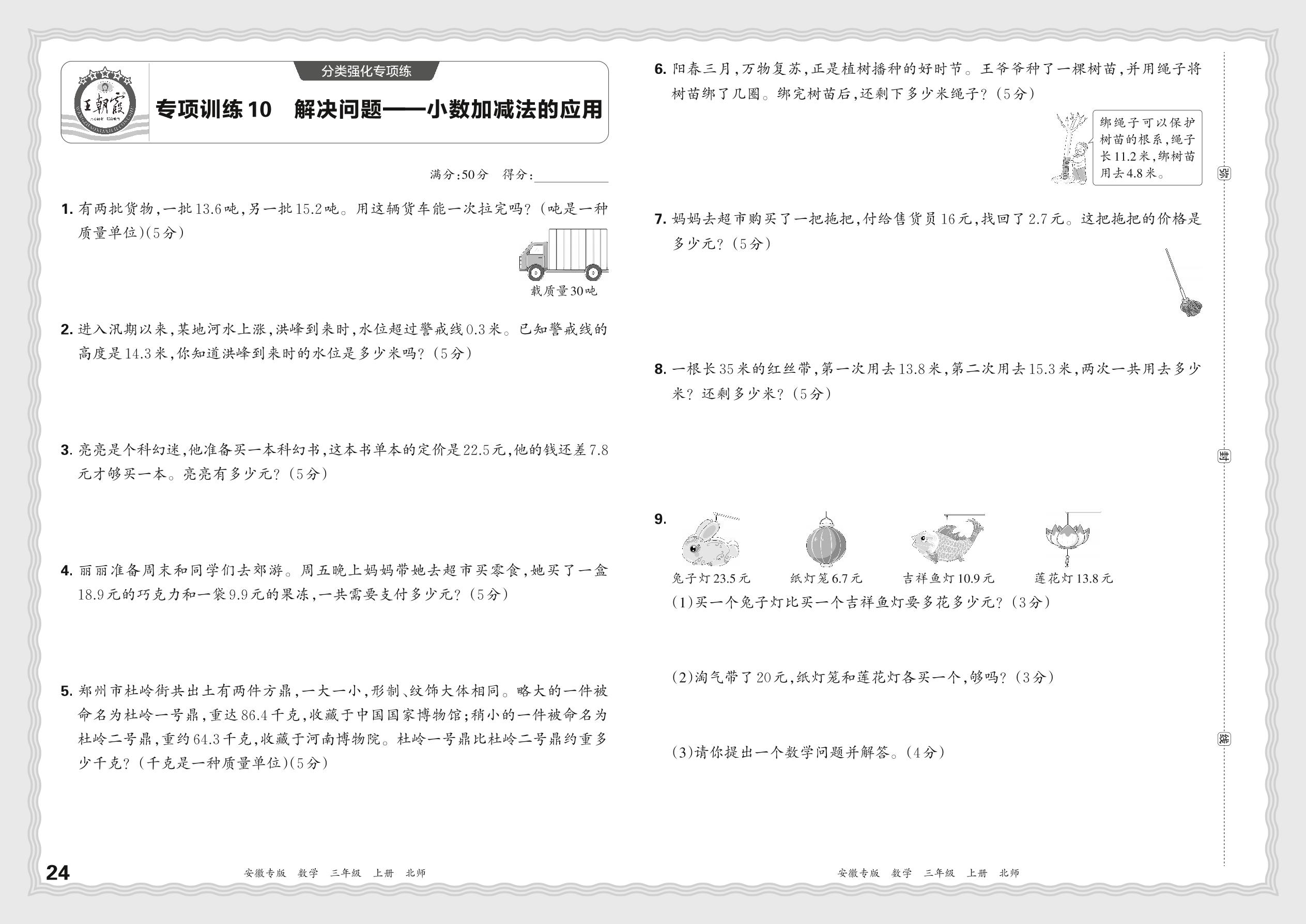 2023秋上册三年级数学北师版 期末专项·解决问题——小数加减法的应用【10】