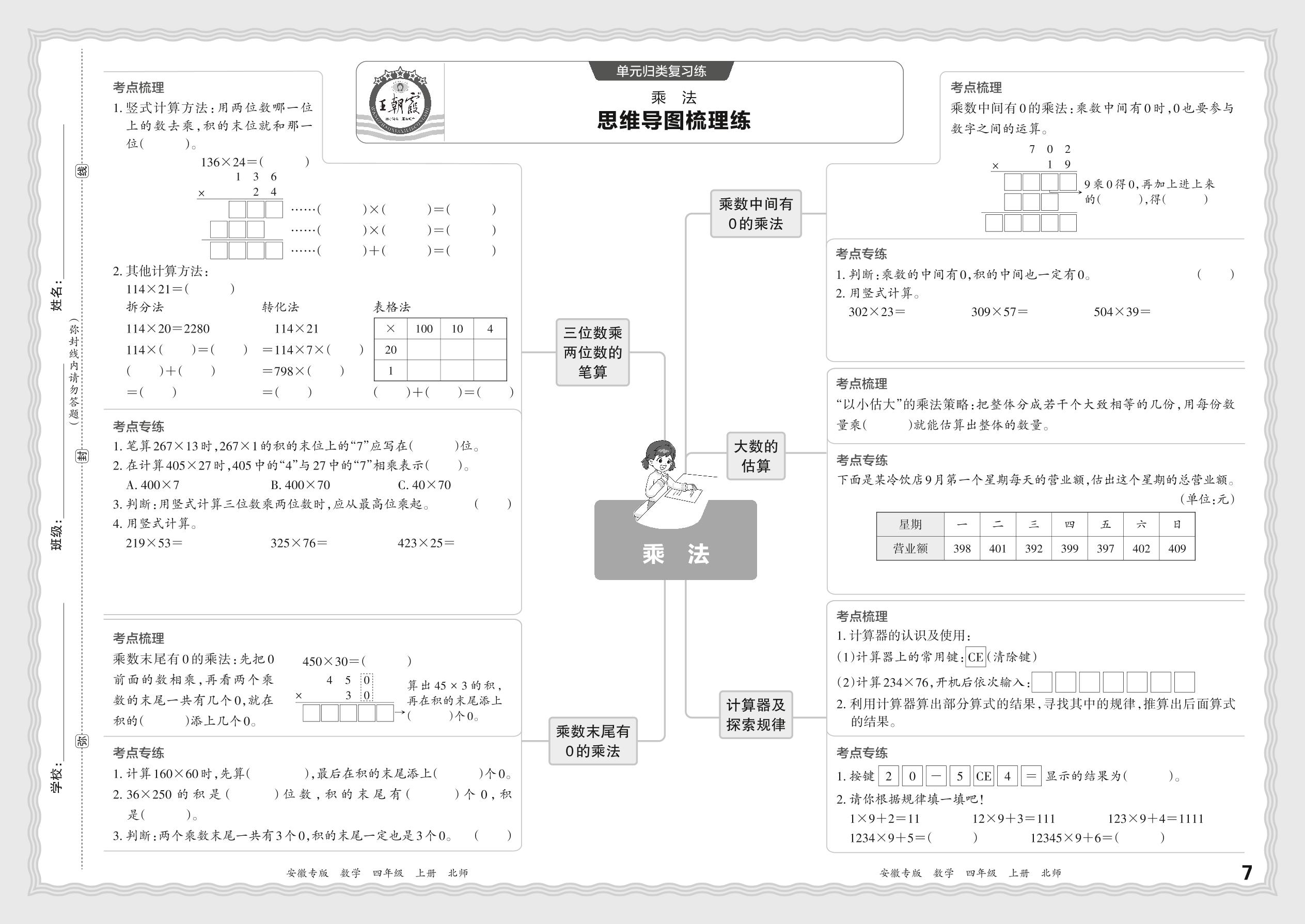 2023秋上册四年级数学北师版 期末过课本·单元归类复习练——乘法【3】