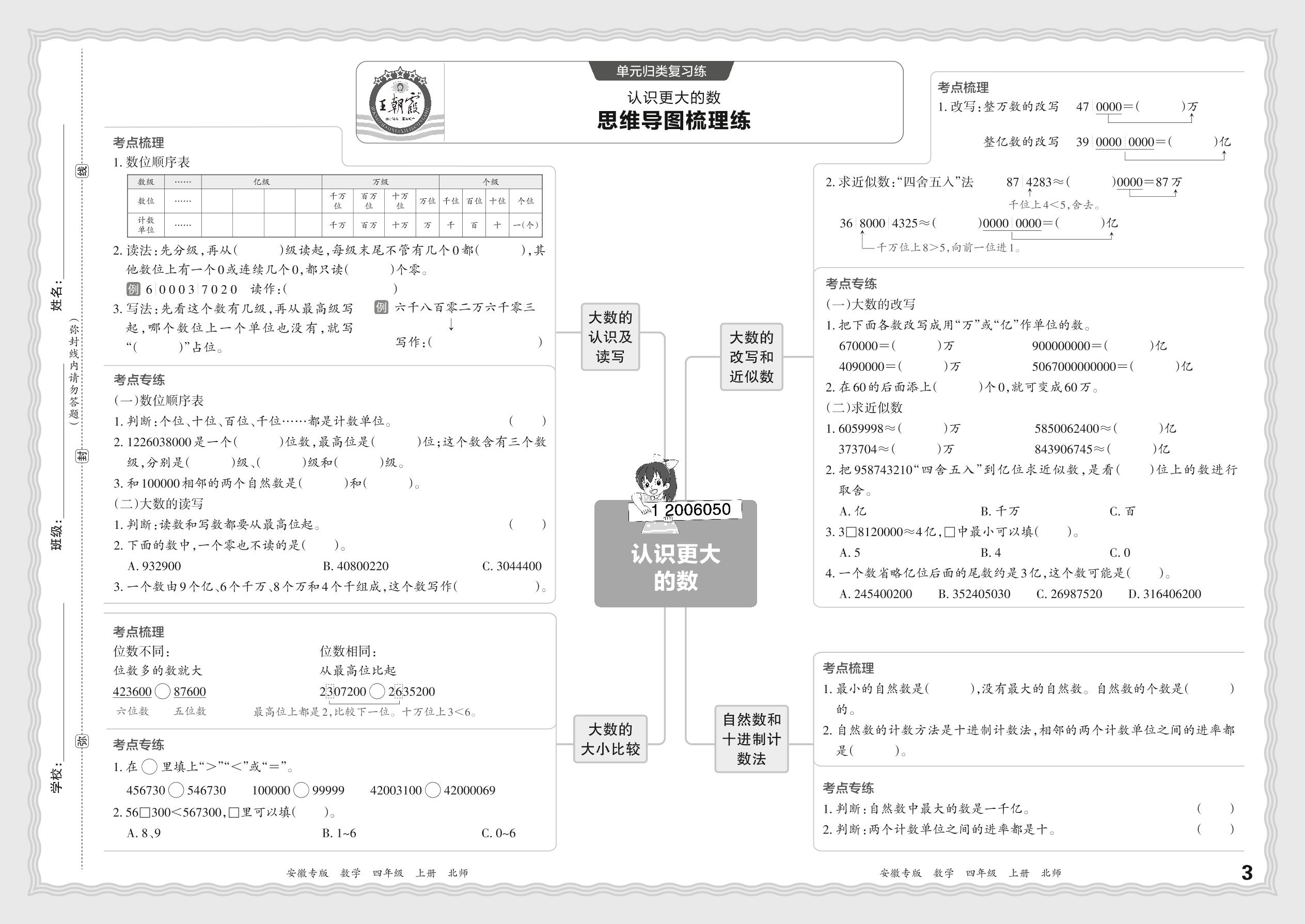 2023秋上册四年级数学北师版 期末过课本·单元归类复习练——认识更大的数【1】
