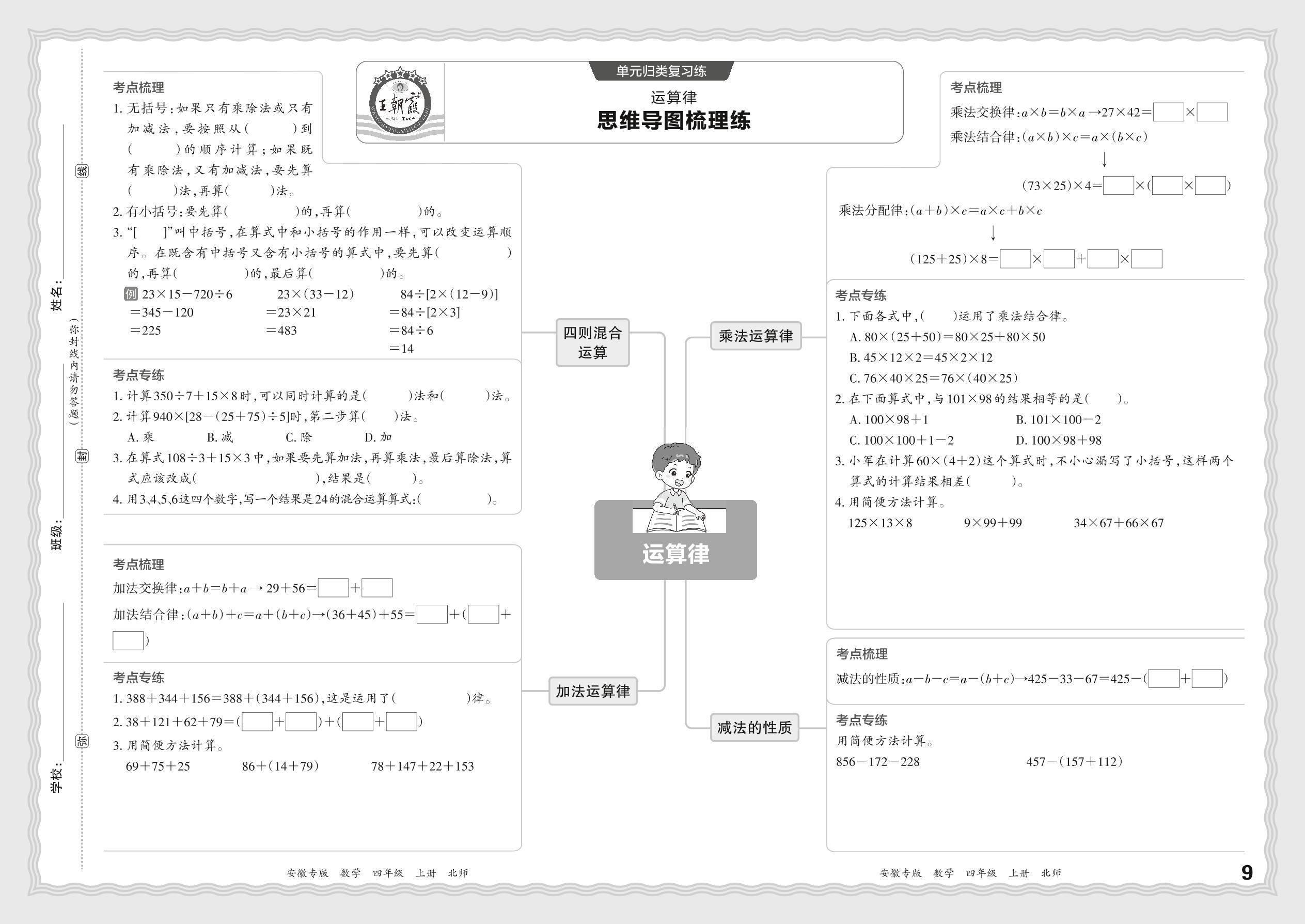 2023秋上册四年级数学北师版 期末过课本·单元归类复习练——运算律【4】