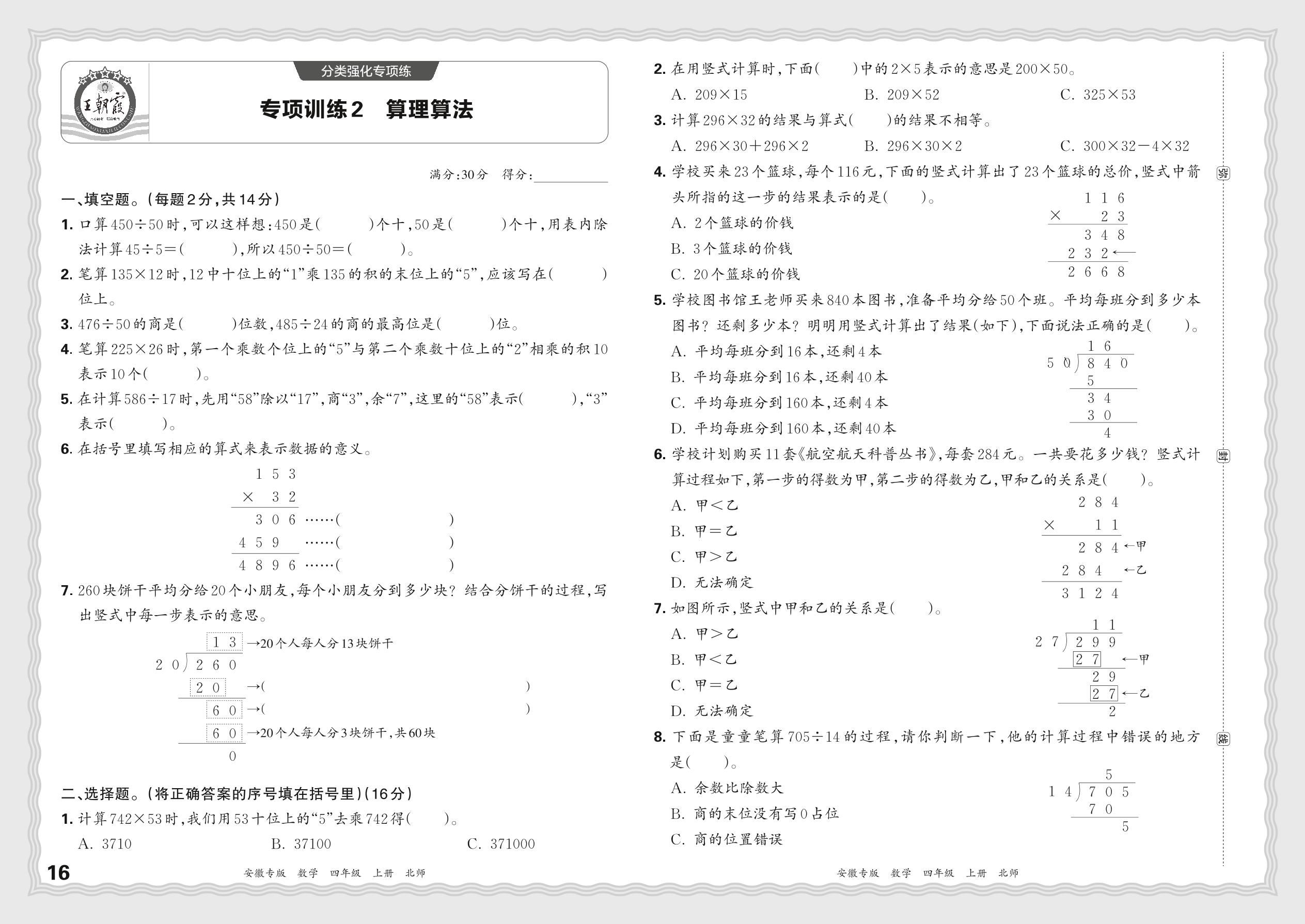 2023秋上册四年级数学北师版 期末专项·算理算法【2】