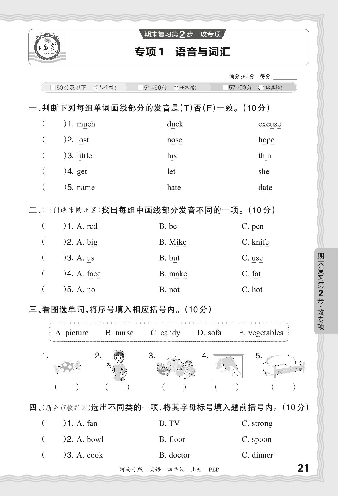 2023秋上册四年级英语人教PEP版 期末专项卷·语音与词汇【1】