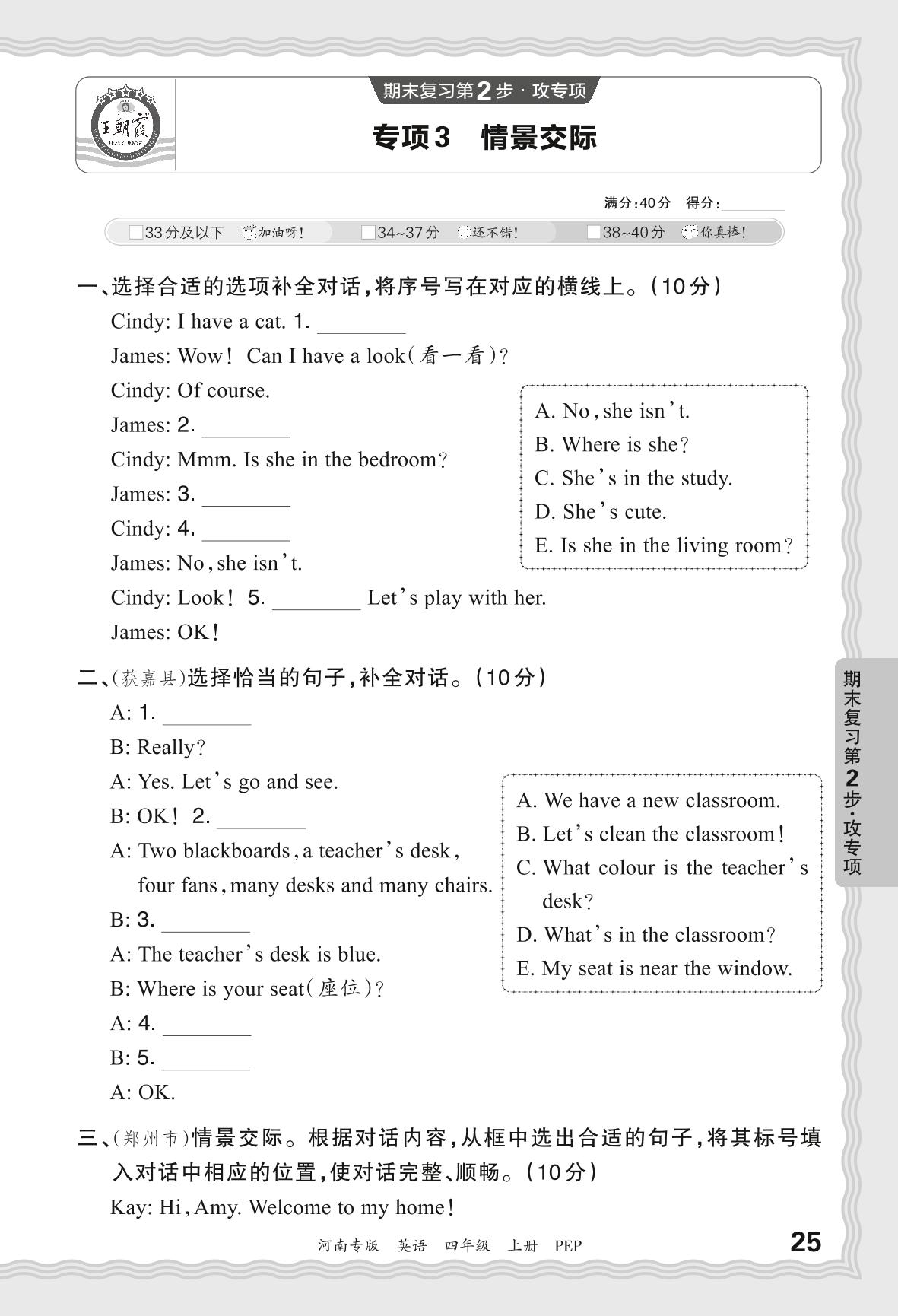 2023秋上册四年级英语人教PEP版 期末专项卷·情景交际【3】