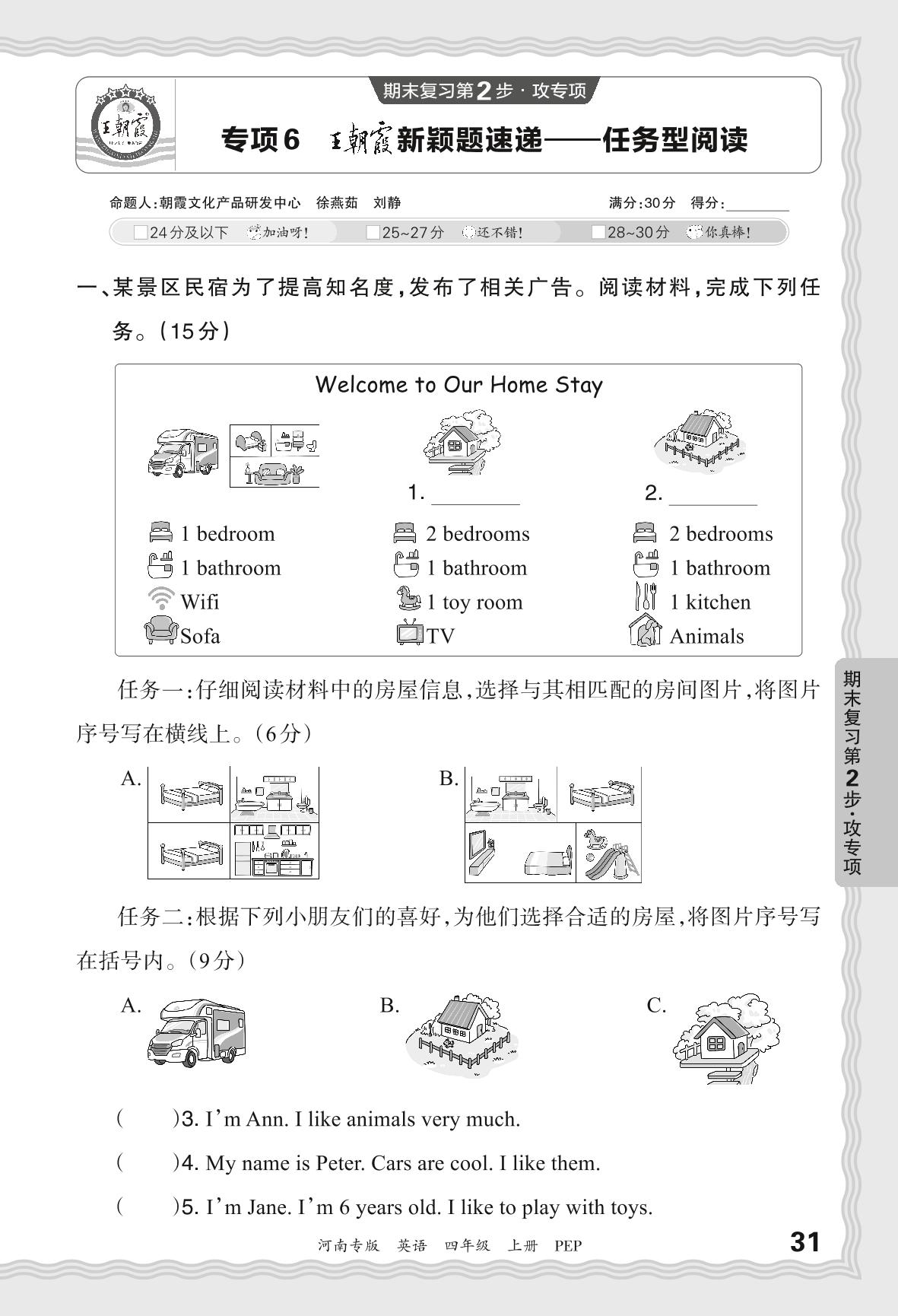 2023秋上册四年级英语人教PEP版 期末专项卷·王朝霞新颖题速递——任务型阅读【6】