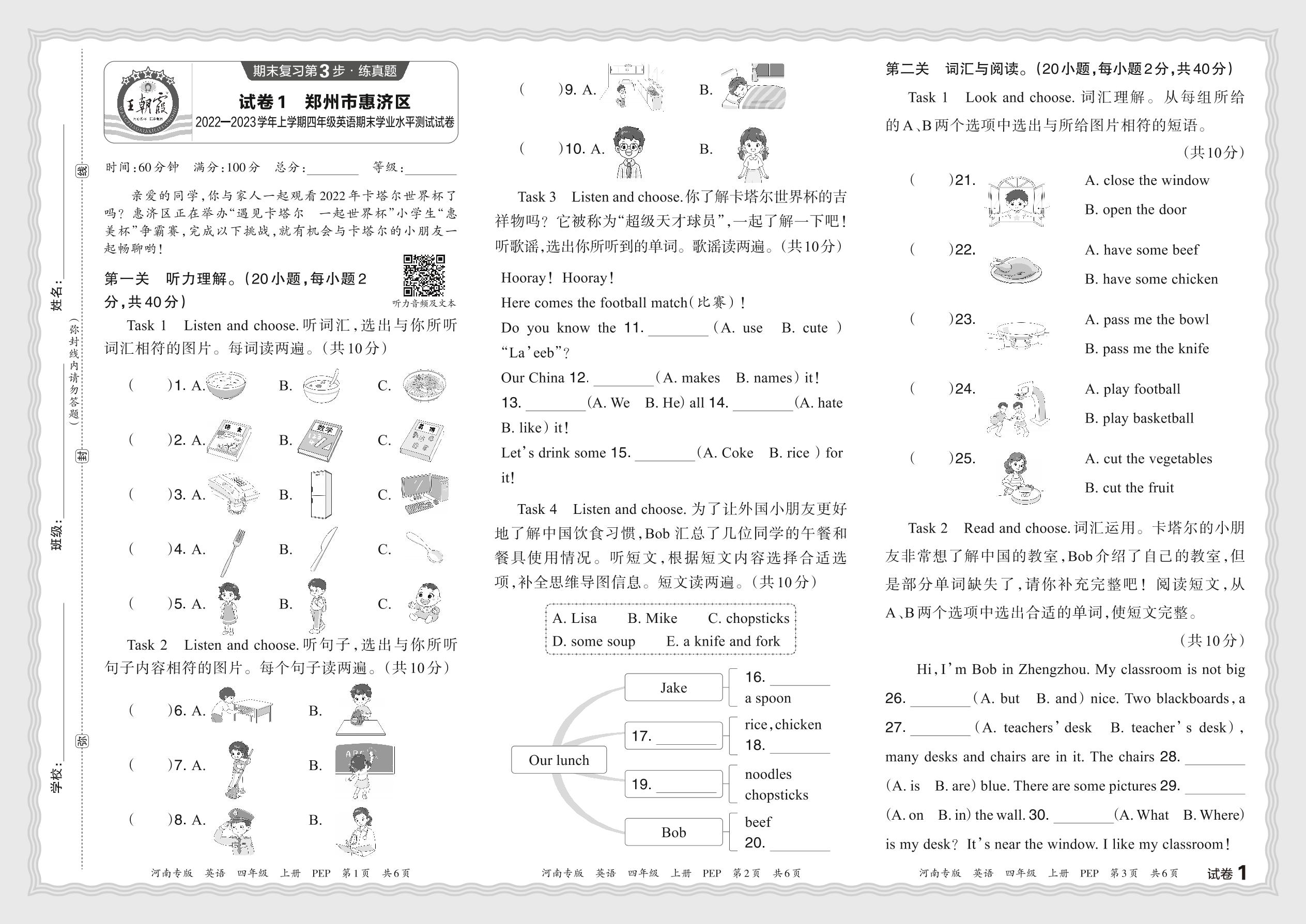河南省郑州市惠济区2022—2023学年上学期四年级英语期末学业水平测试试卷(人教PEP版)【1】