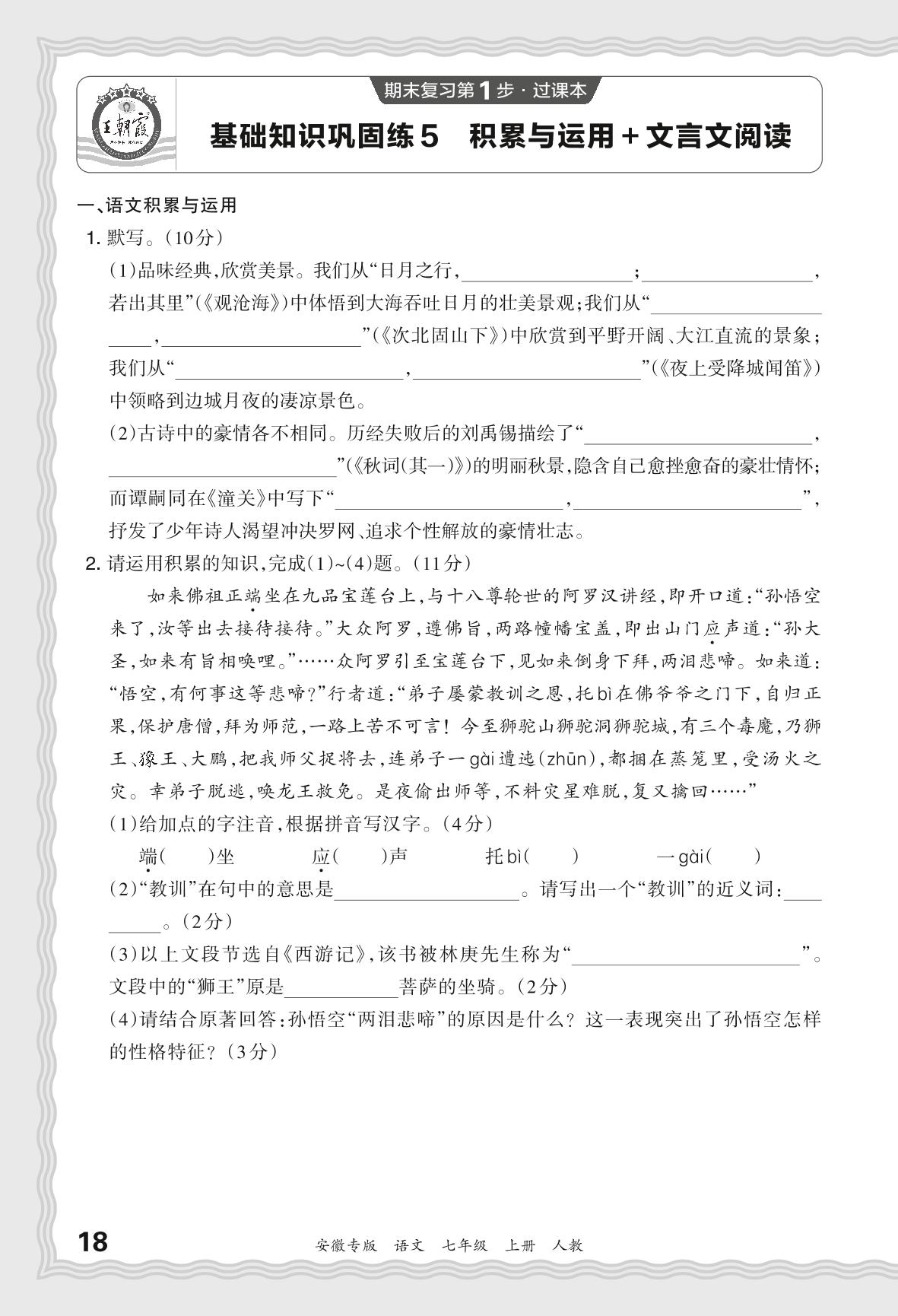 2023秋上册七年级语文人教版 期末过课本·基础知识巩固练 积累与运用+文言文阅读【5】