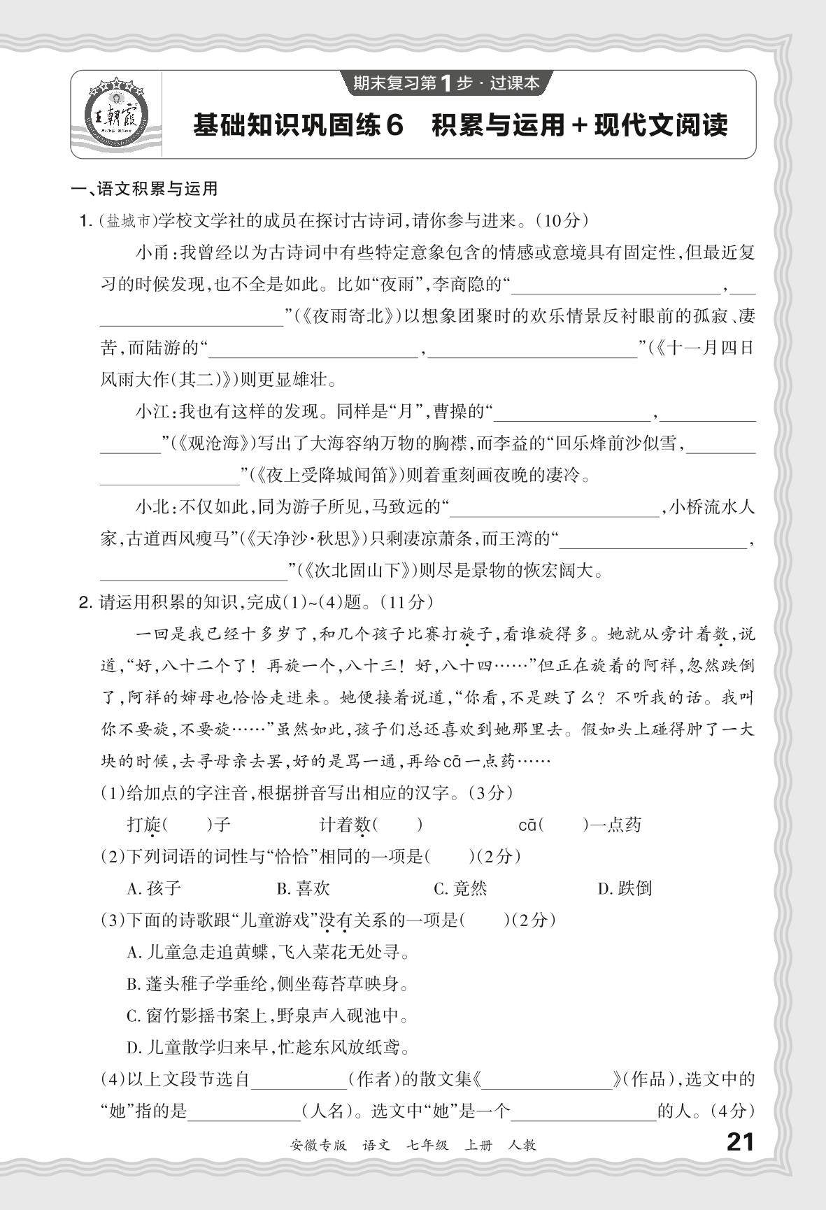 2023秋上册七年级语文人教版 期末过课本·基础知识巩固练 积累与运用+现代文阅读【6】