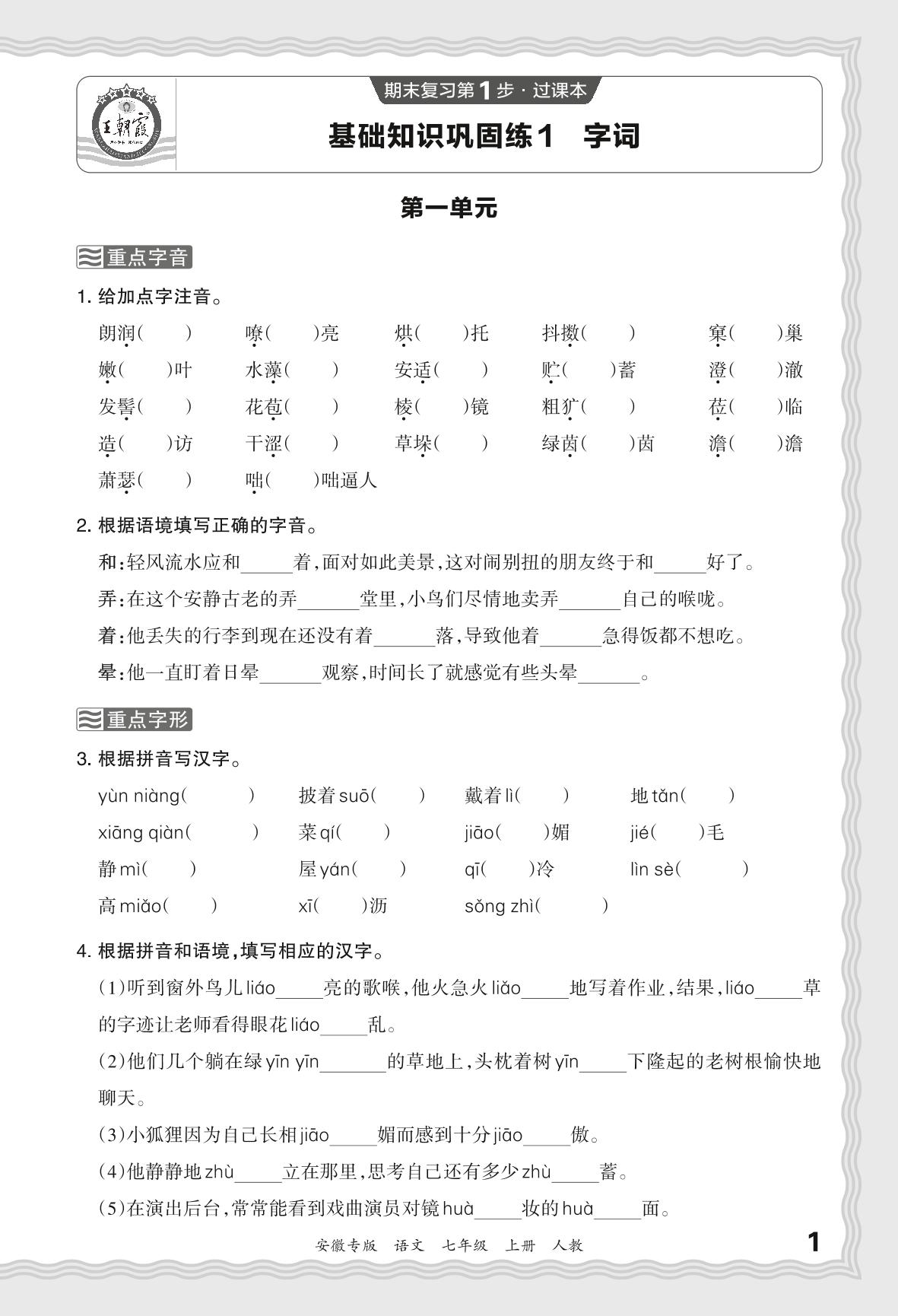 2023秋上册七年级语文人教版 期末过课本·基础知识巩固练 字词【1】