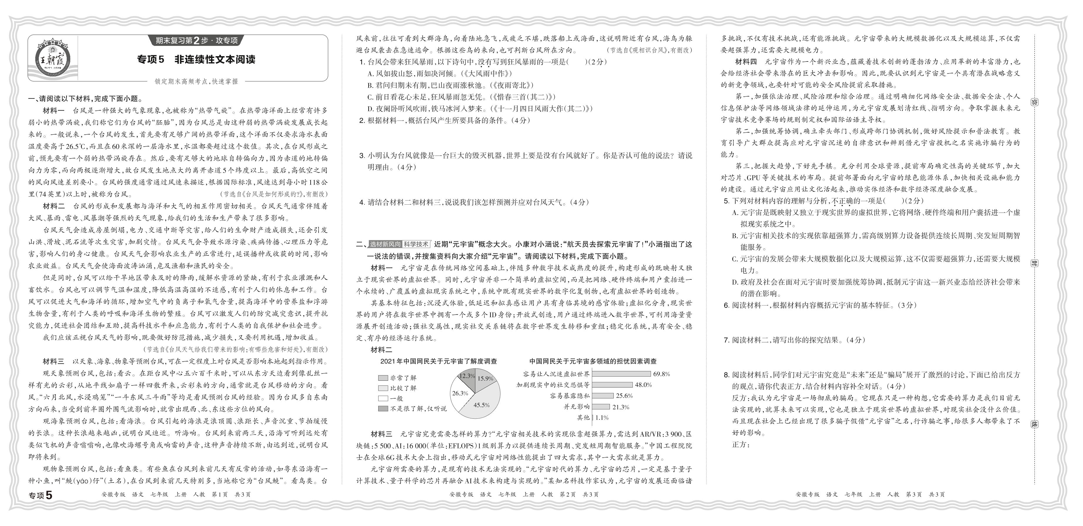 2023秋上册七年级语文人教版 期末专项卷·非连续性文本阅读【5】