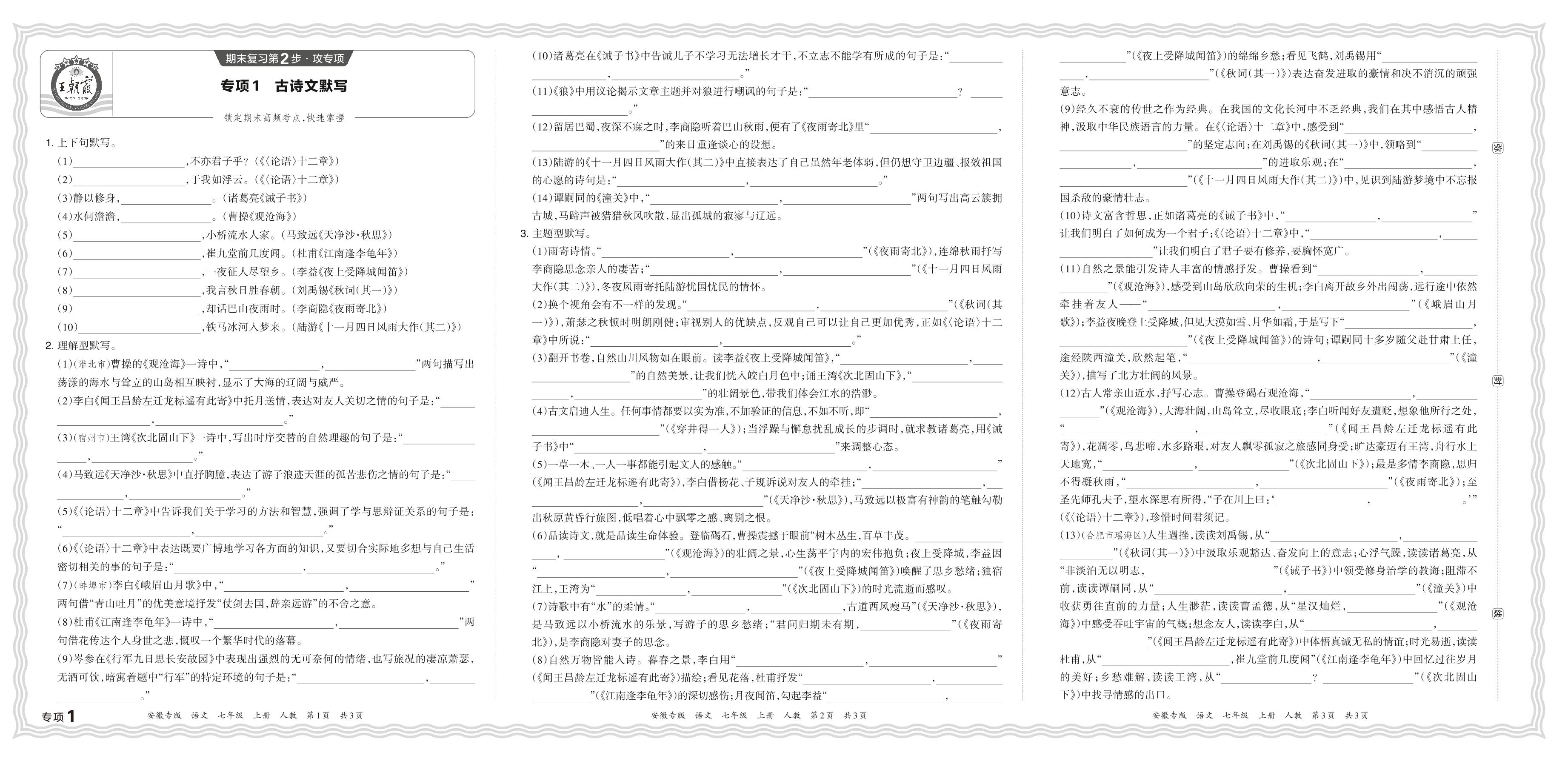 2023秋上册七年级语文人教版 期末专项卷·古诗文默写【1】