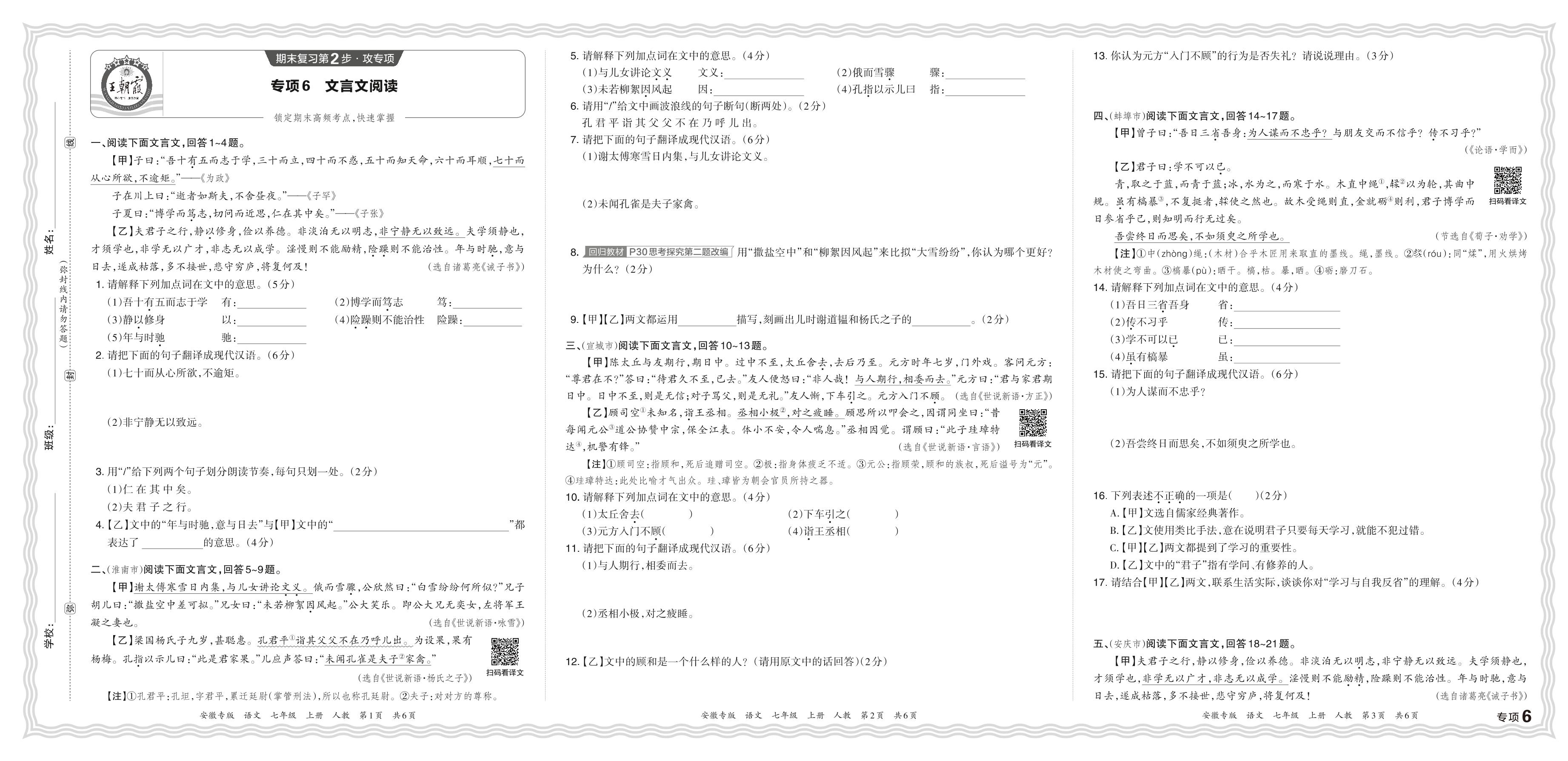 2023秋上册七年级语文人教版 期末专项卷·文言文阅读【6】