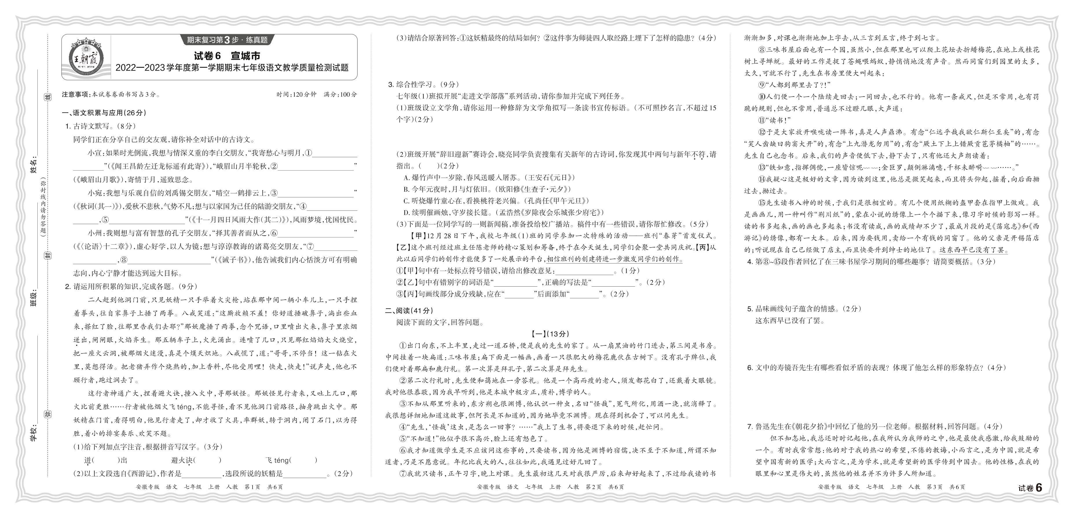 安徽省宣城市2022—2023学年度第一学期期末七年级语文教学质量检测试题(人教版)【6】