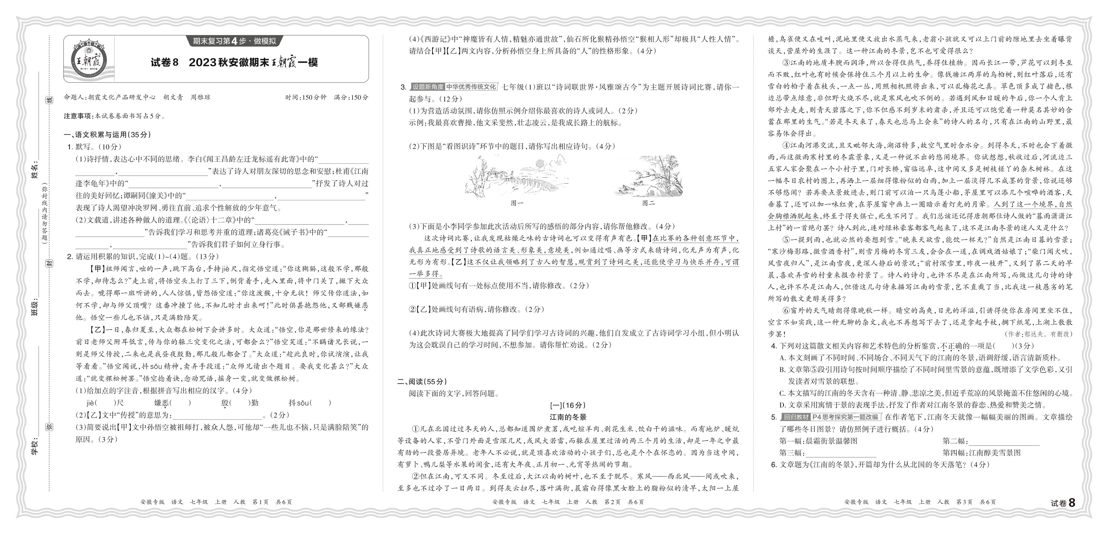2023秋上册七年级语文人教版 安徽期末王朝霞一模