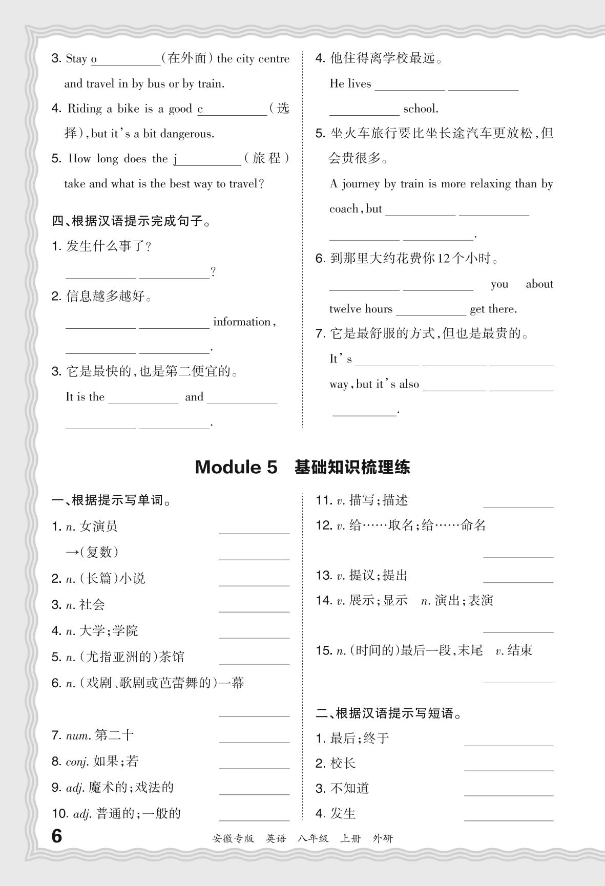 2023秋上册八年级英语外研版 期末过课本·Module 5 基础知识梳理练