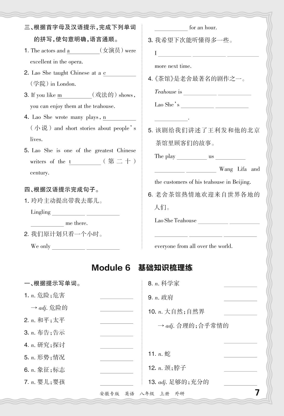 2023秋上册八年级英语外研版 期末过课本·Module 6 基础知识梳理练