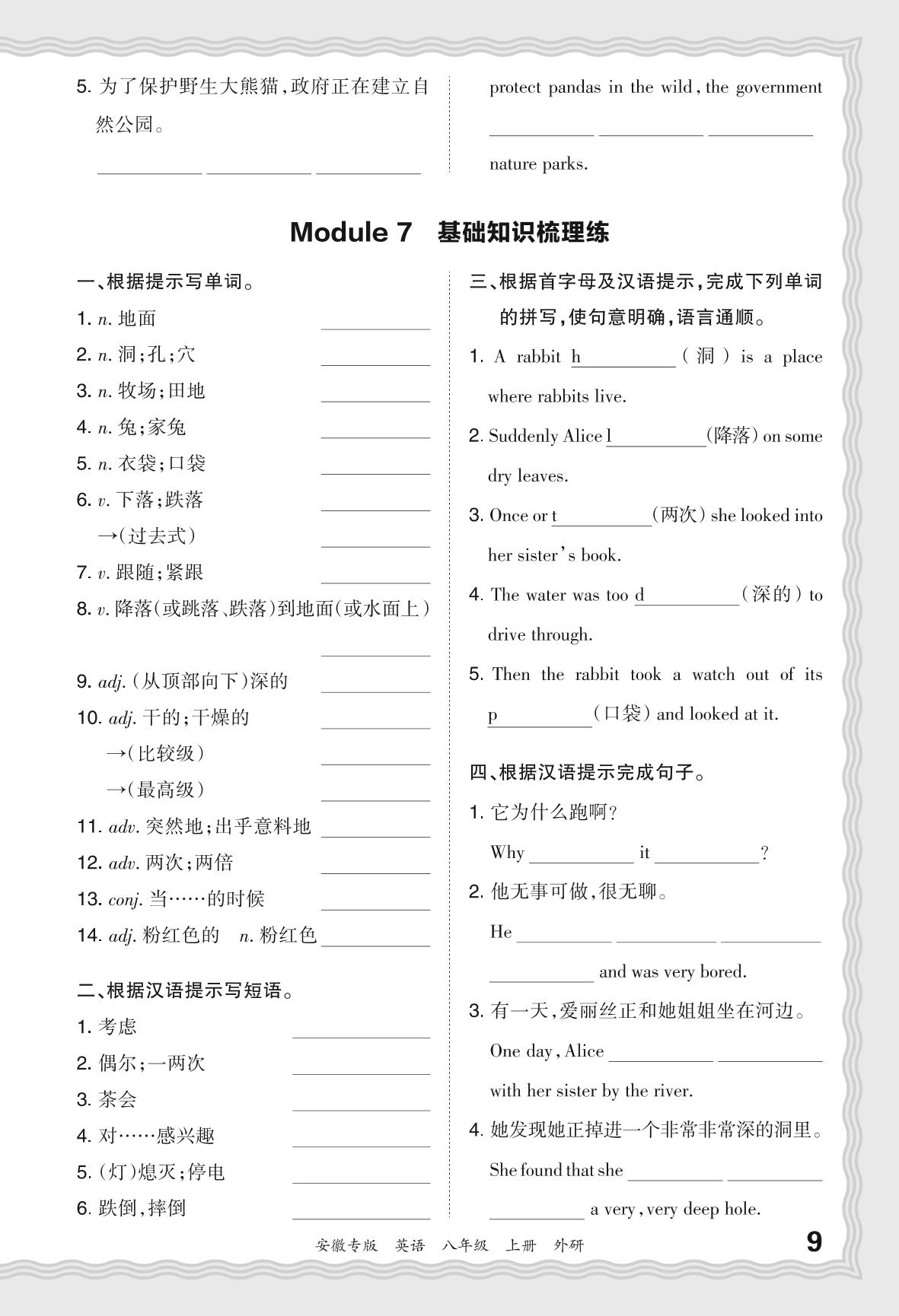 2023秋上册八年级英语外研版 期末过课本·Module 7 基础知识梳理练