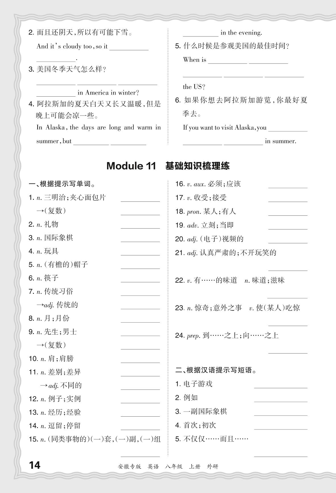 2023秋上册八年级英语外研版 期末过课本·Module 11 基础知识梳理练