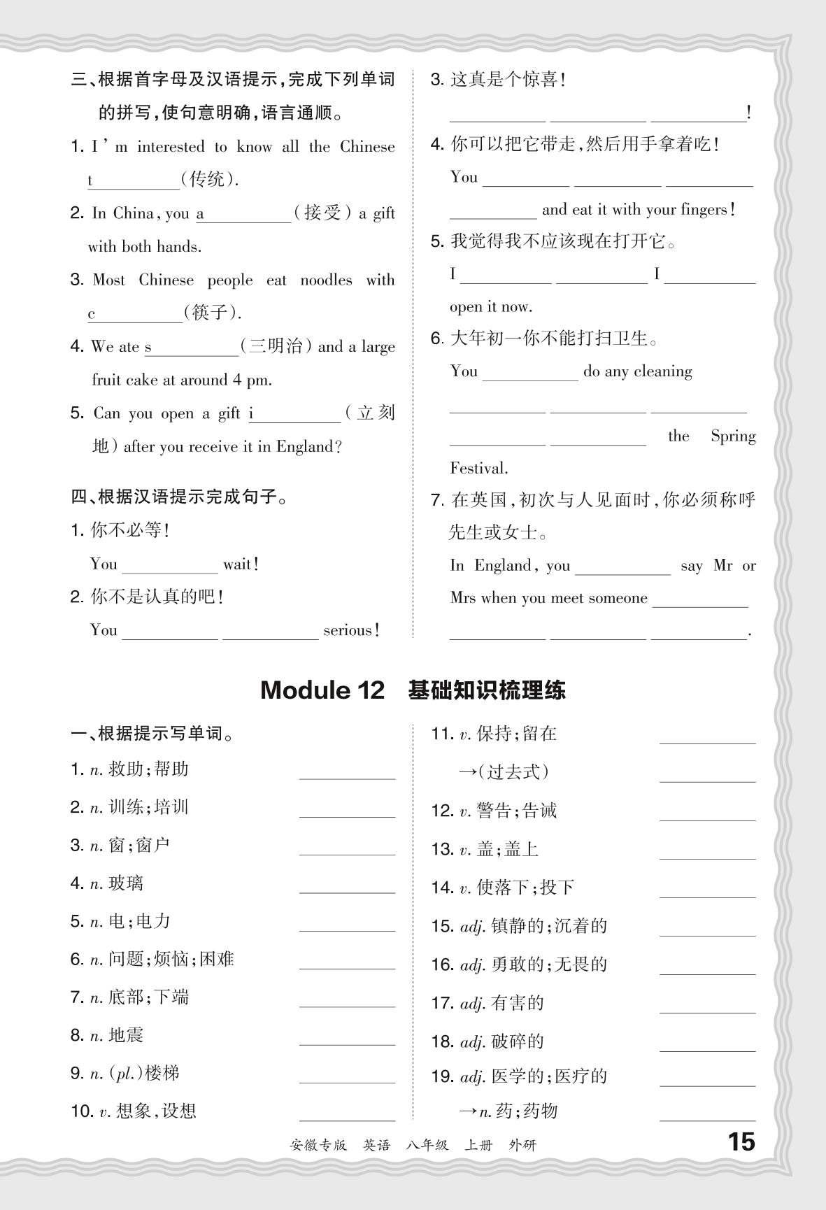 2023秋上册八年级英语外研版 期末过课本·Module 12 基础知识梳理练