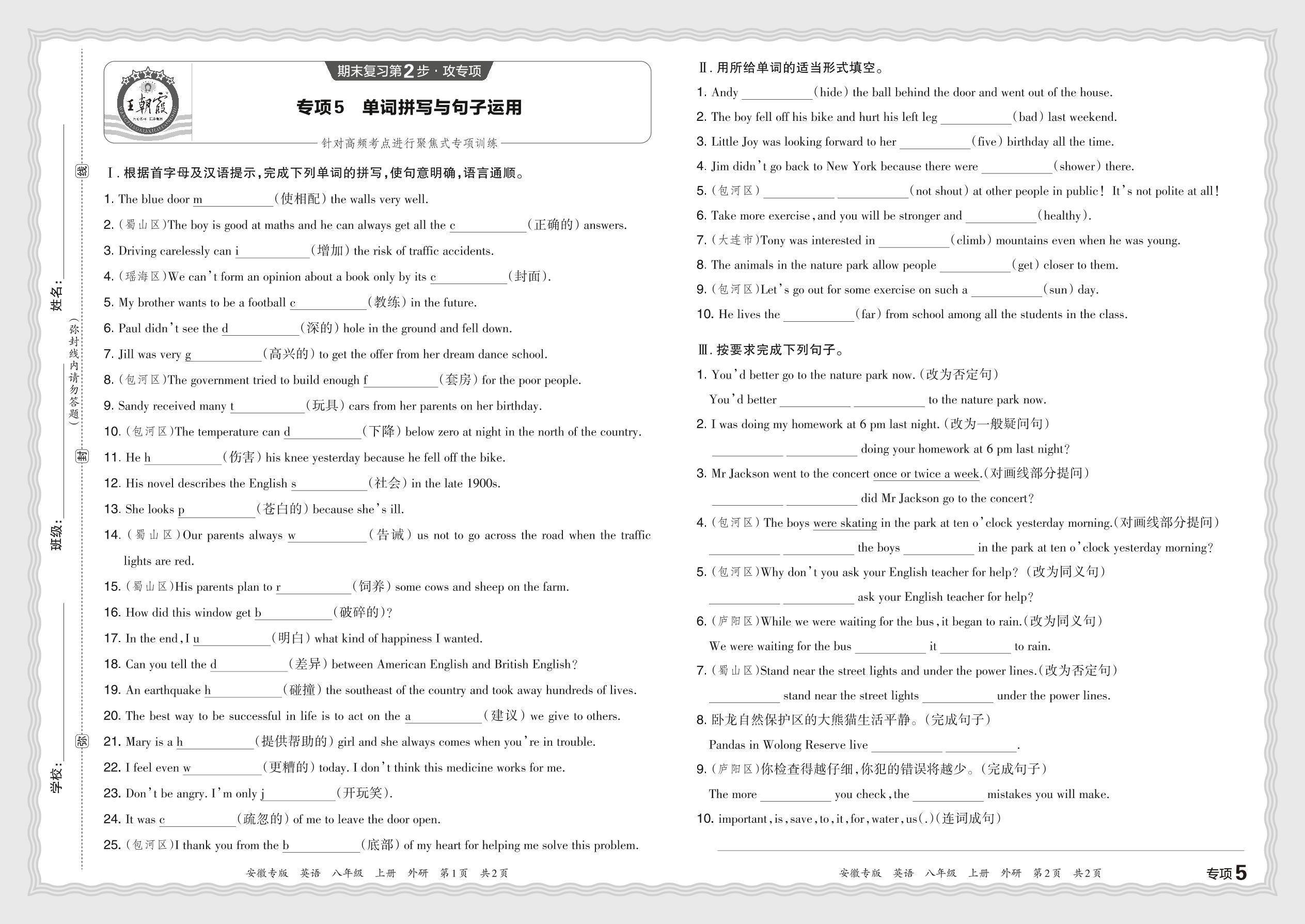 2023秋上册八年级英语外研版 期末专项卷·单词拼写与句子运用【5】