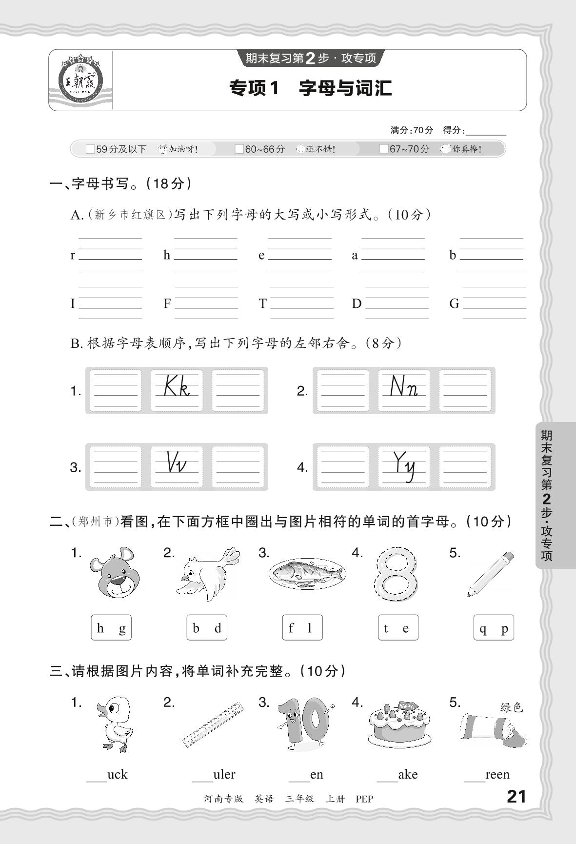 2023秋上册三年级英语人教PEP版 期末专项卷·字母与词汇【1】