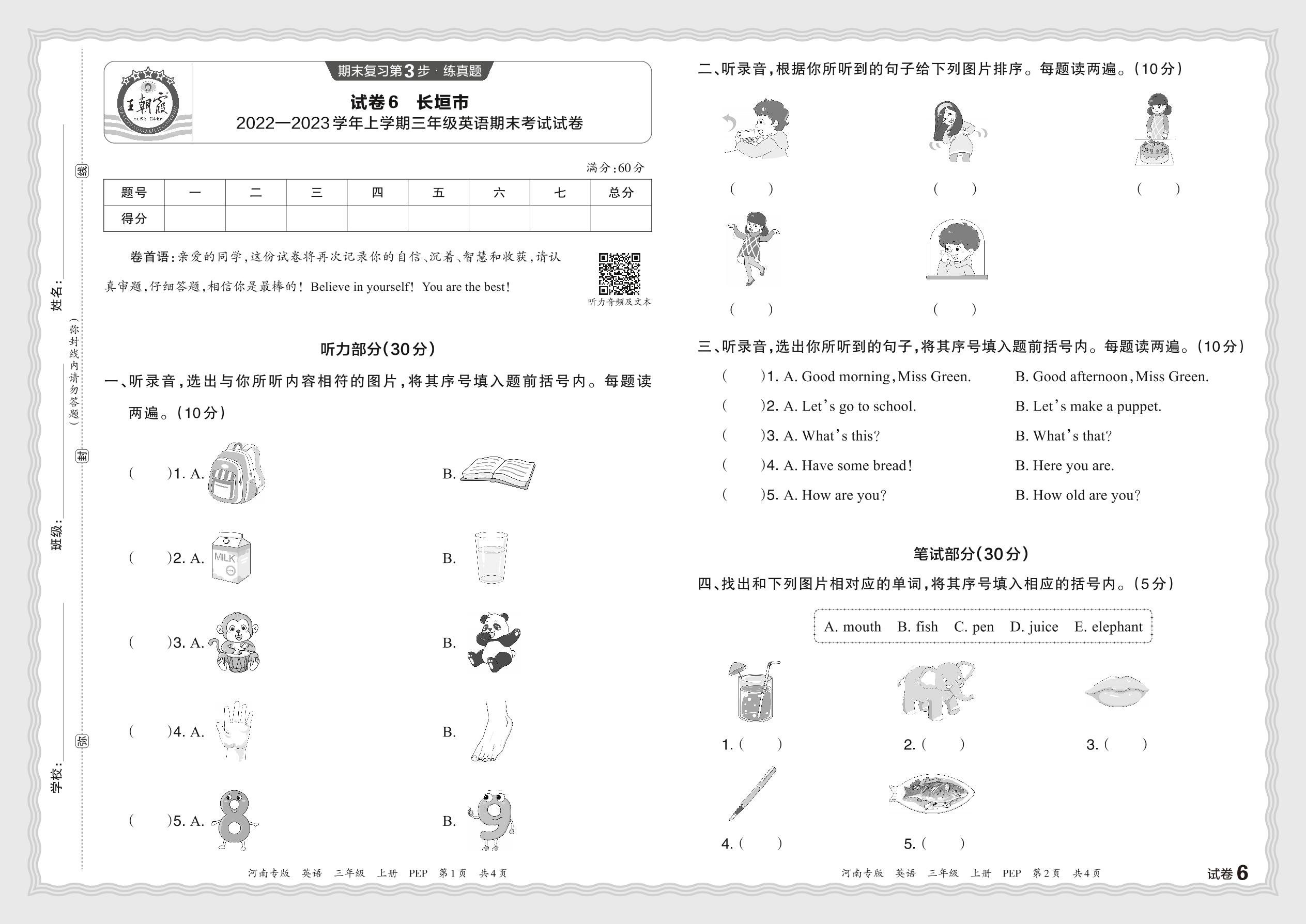 河南省长垣市2022—2023学年上学期三年级英语期末考试试卷(人教PEP版)【6】