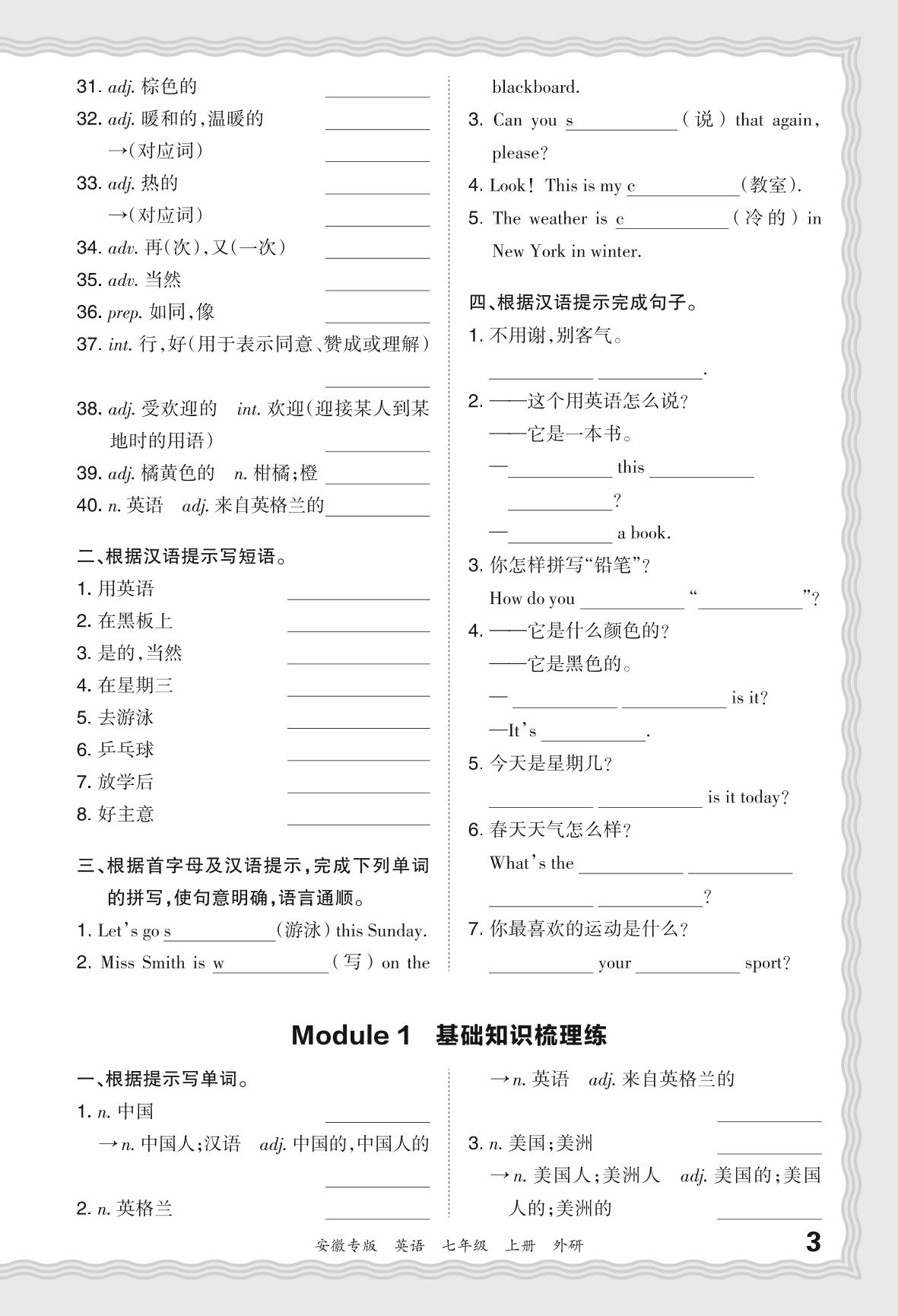 2023秋上册七年级英语外研版 期末过课本·Module 1 基础知识梳理练