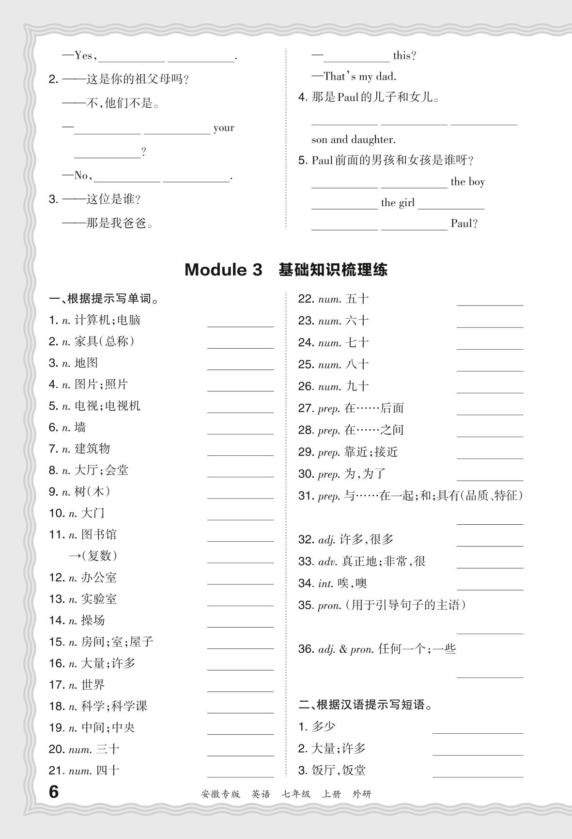 2023秋上册七年级英语外研版 期末过课本·Module 3 基础知识梳理练