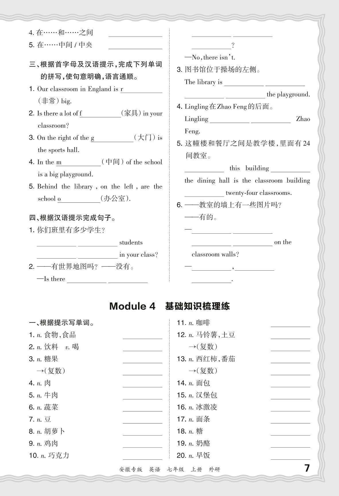 2023秋上册七年级英语外研版 期末过课本·Module 4 基础知识梳理练