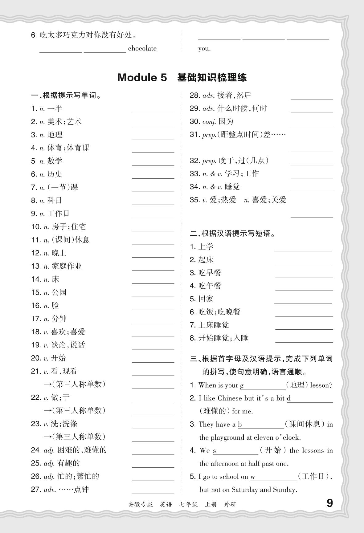 2023秋上册七年级英语外研版 期末过课本·Module 5 基础知识梳理练