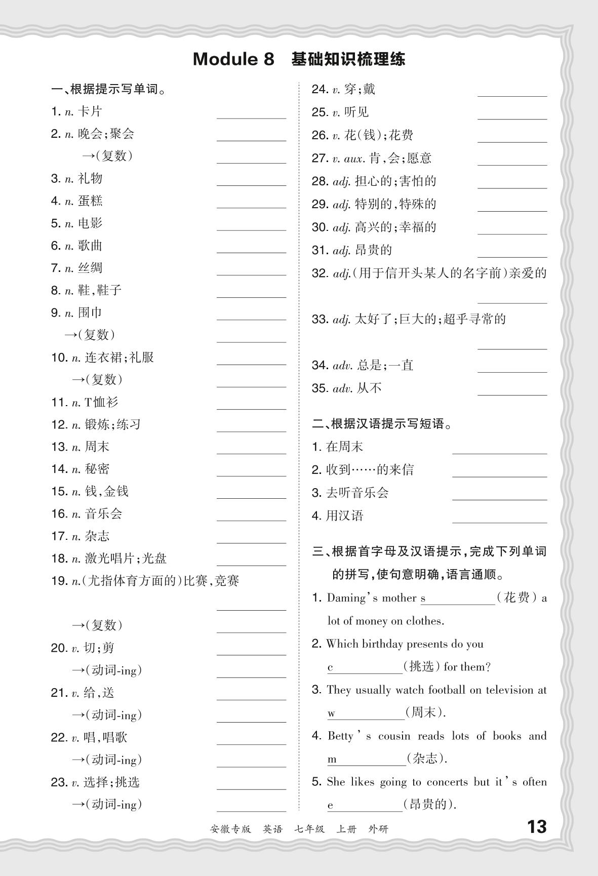 2023秋上册七年级英语外研版 期末过课本·Module 8 基础知识梳理练