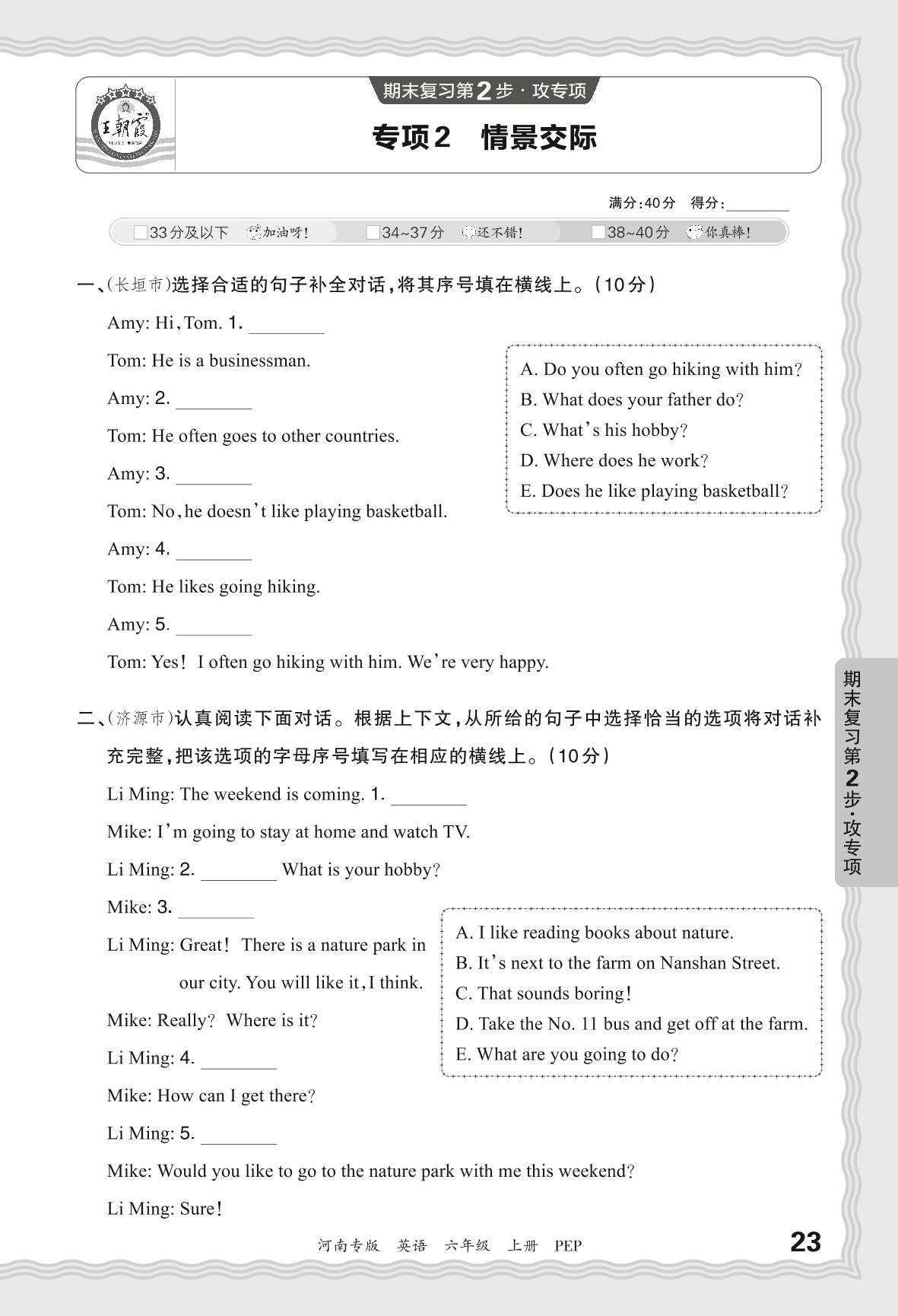 2023秋上册六年级英语人教PEP版 期末专项卷·情景交际【2】
