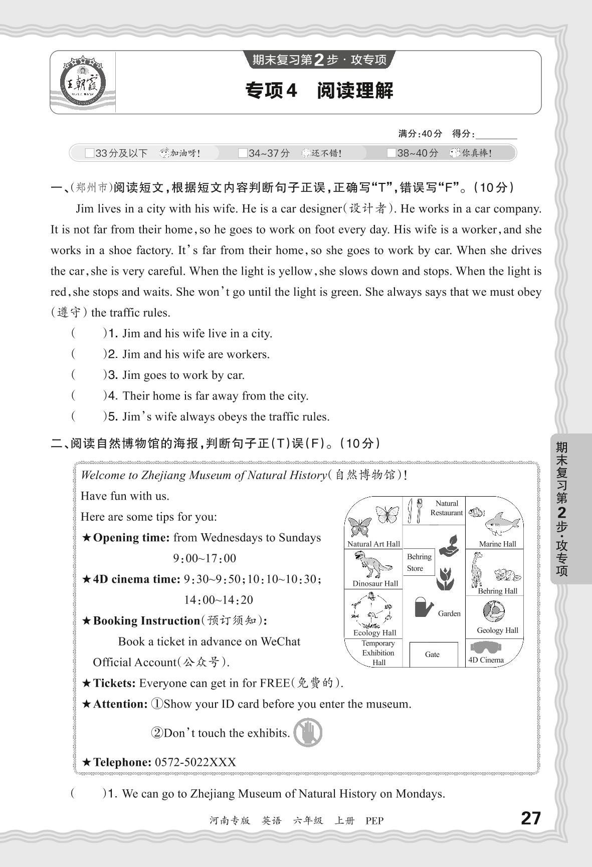 2023秋上册六年级英语人教PEP版 期末专项卷·阅读理解【4】