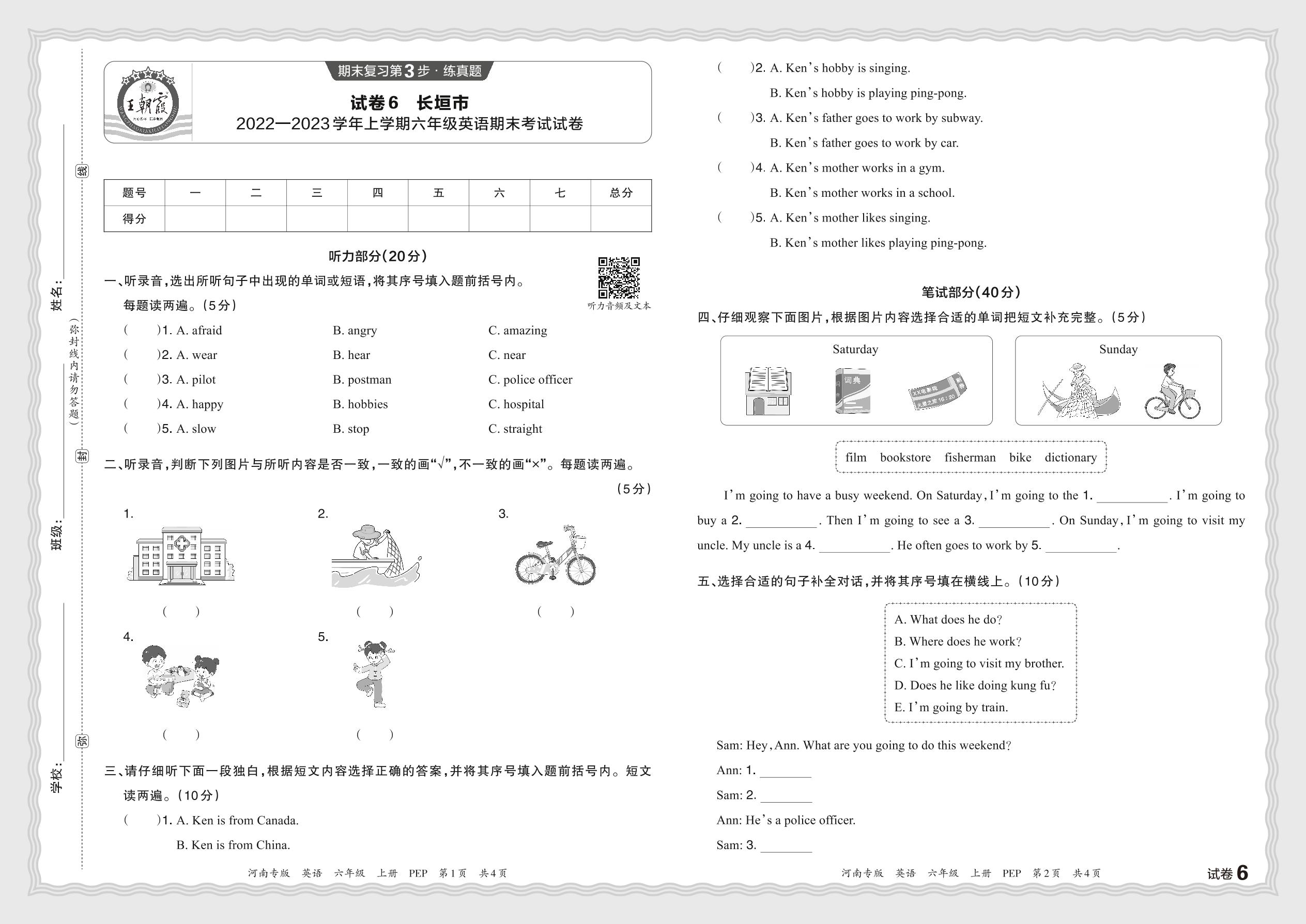 河南省长垣市2022—2023学年上学期六年级英语期末考试试卷(人教PEP版)【6】