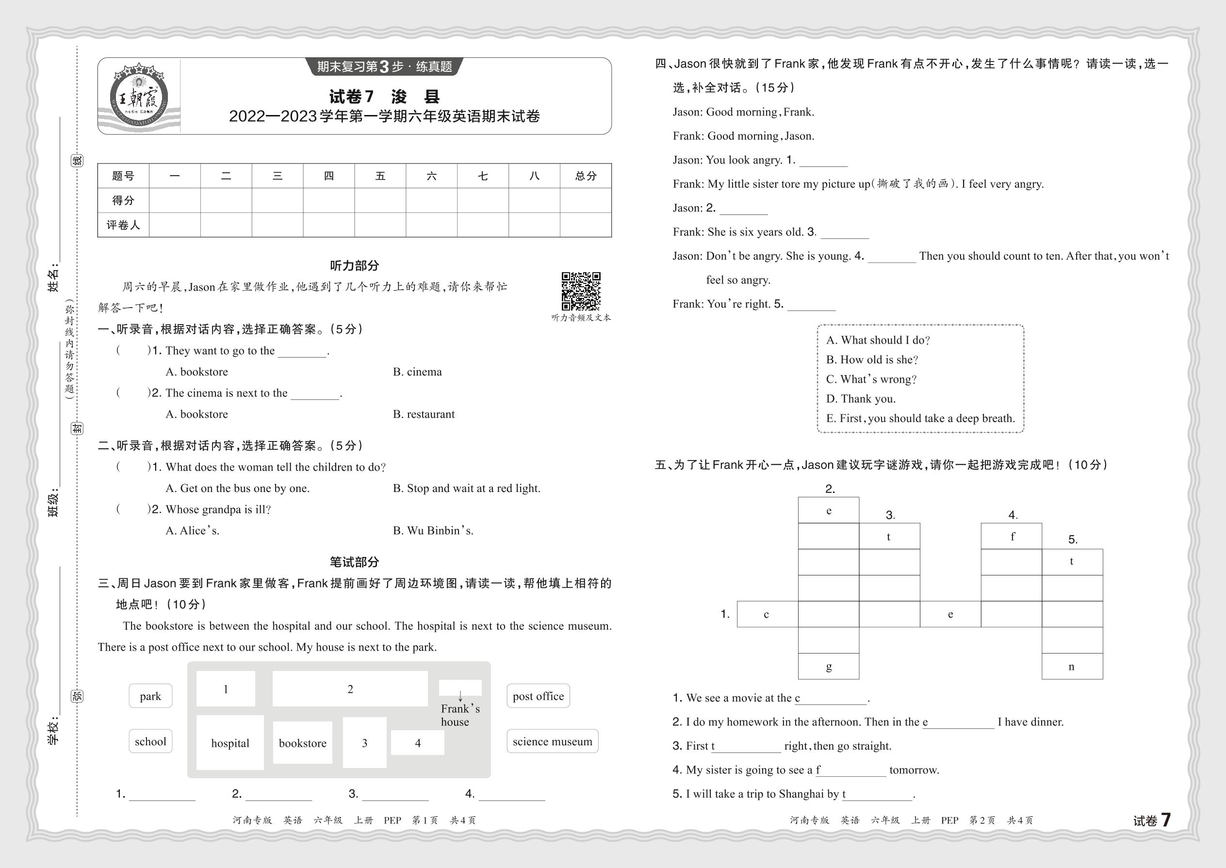 河南省鹤壁市浚县2022—2023学年第一学期六年级期末试卷(人教PEP版)【7】