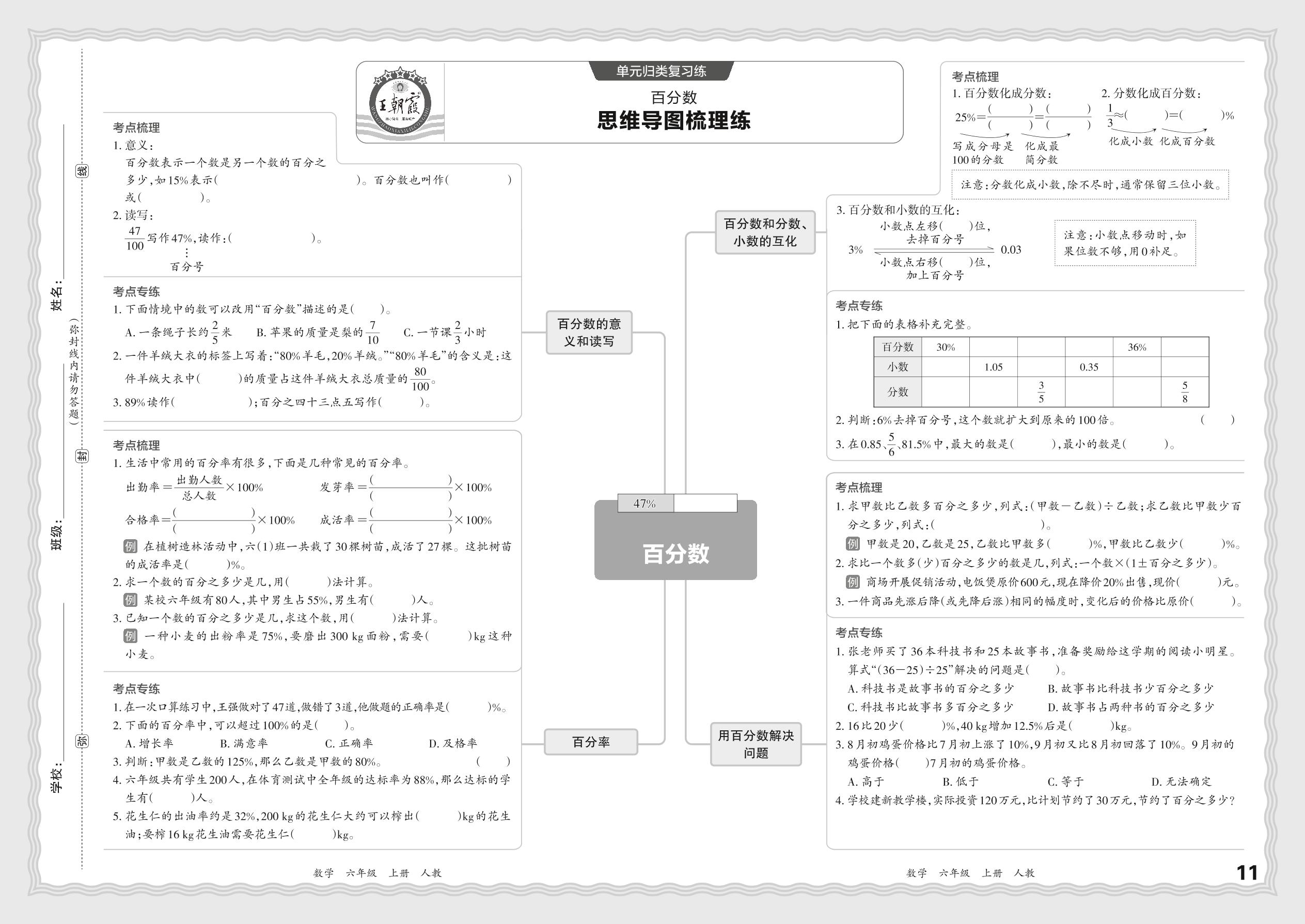 2023秋上册六年级数学人教版 期末过课本·单元归类复习练——百分数【5】