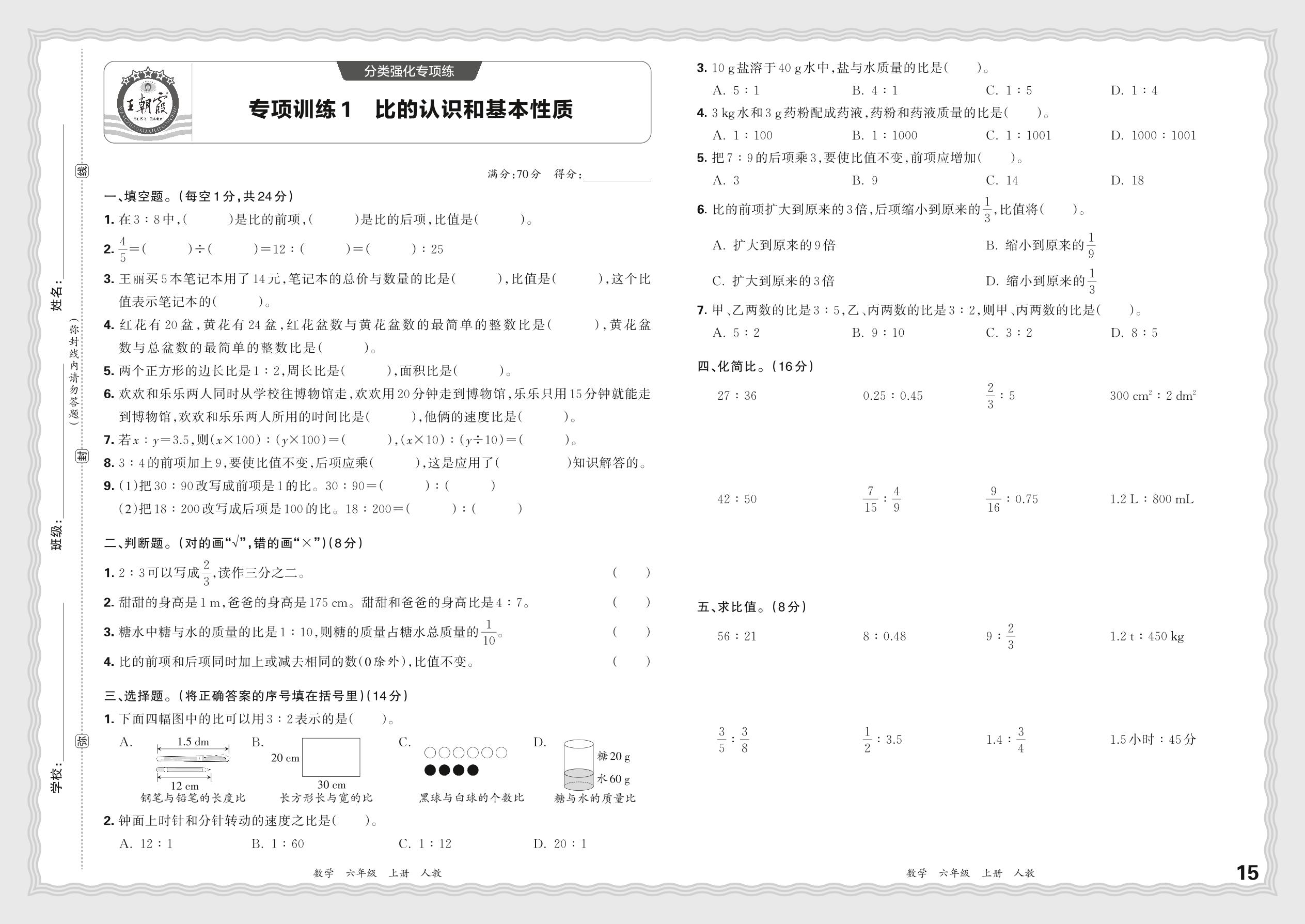 2023秋上册六年级数学人教版 期末专项·比的认识和基本性质【1】