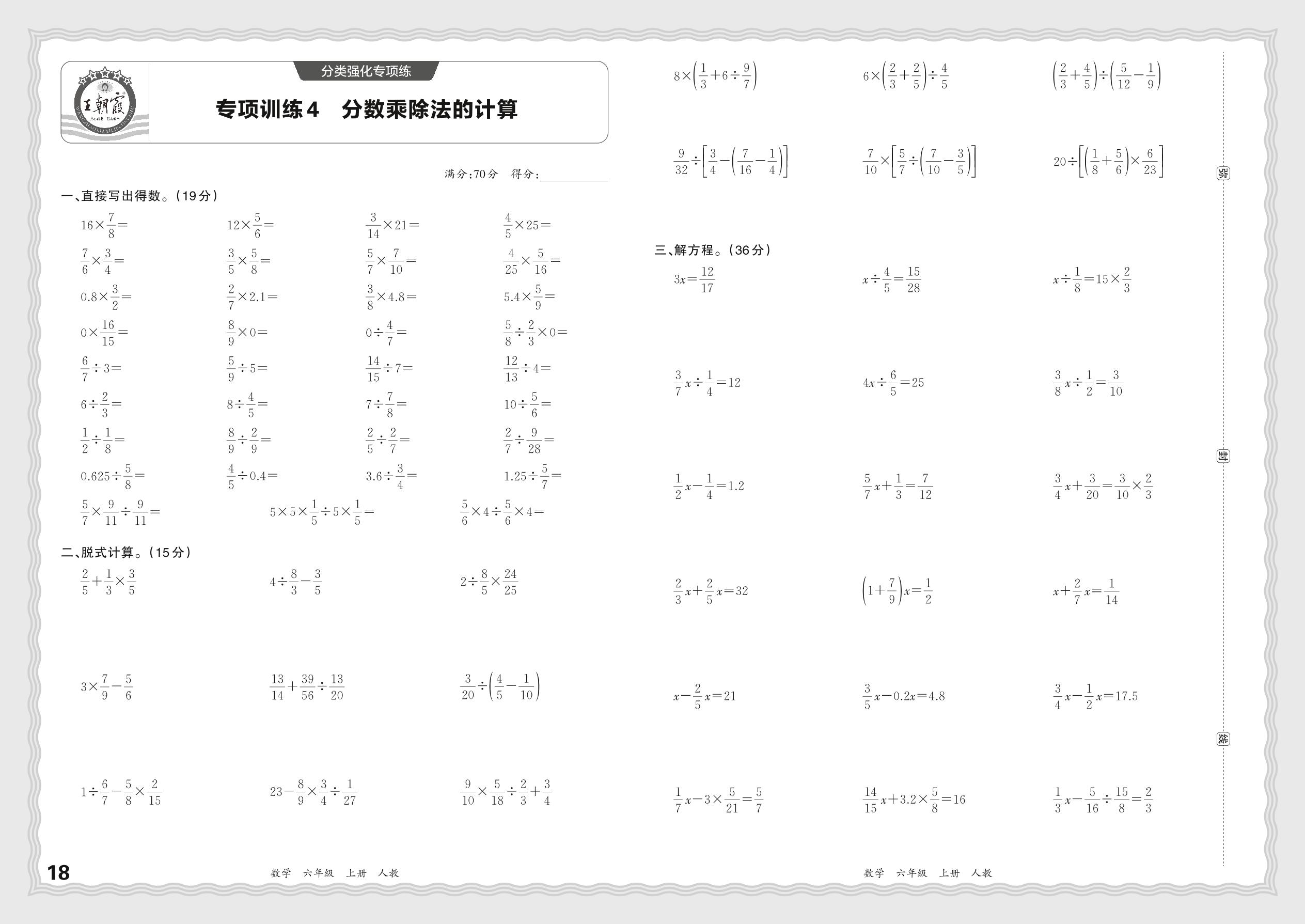 六年级数学人教版上册专项卷