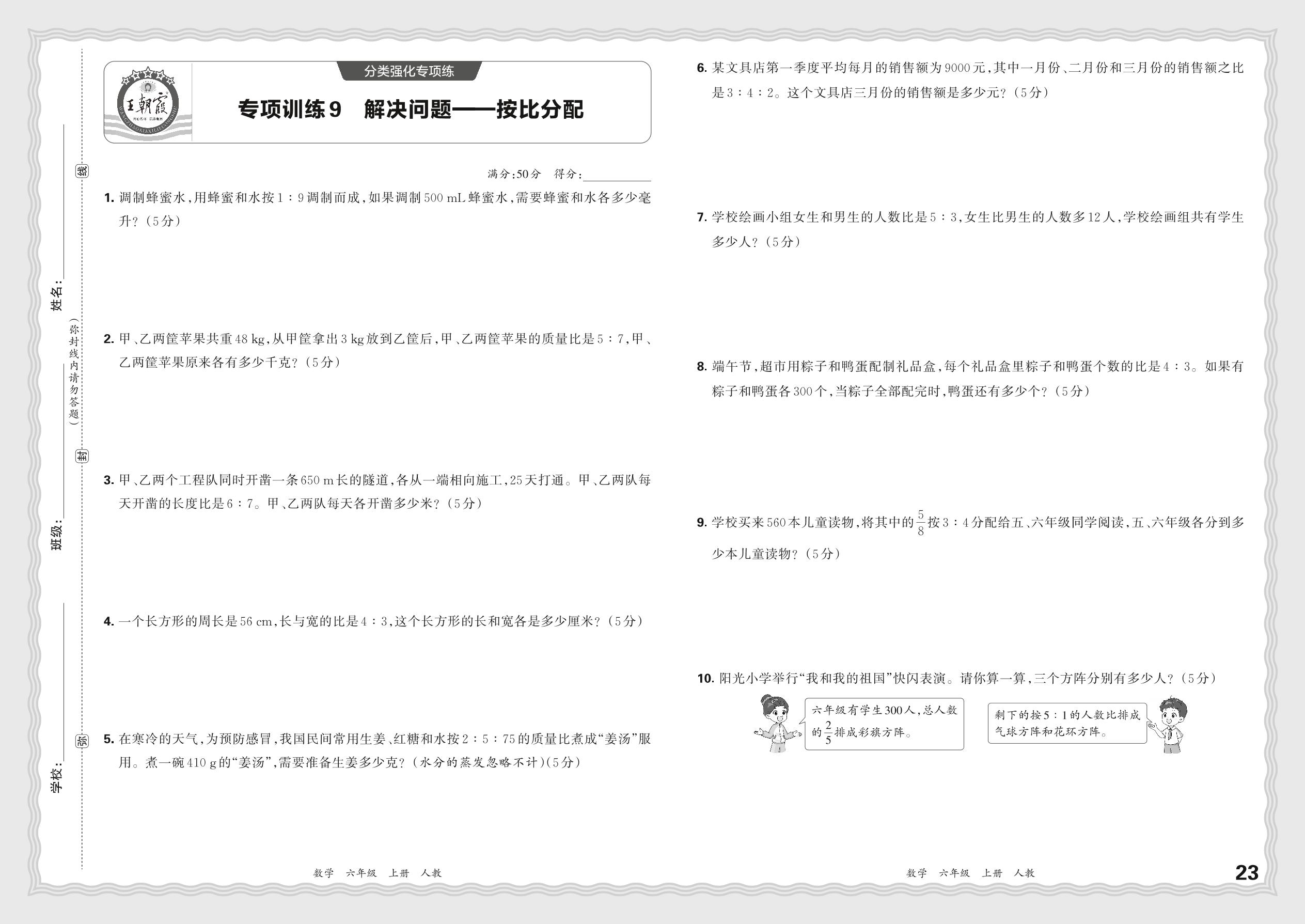 2023秋上册六年级数学人教版 期末专项·解决问题——按比分配【9】