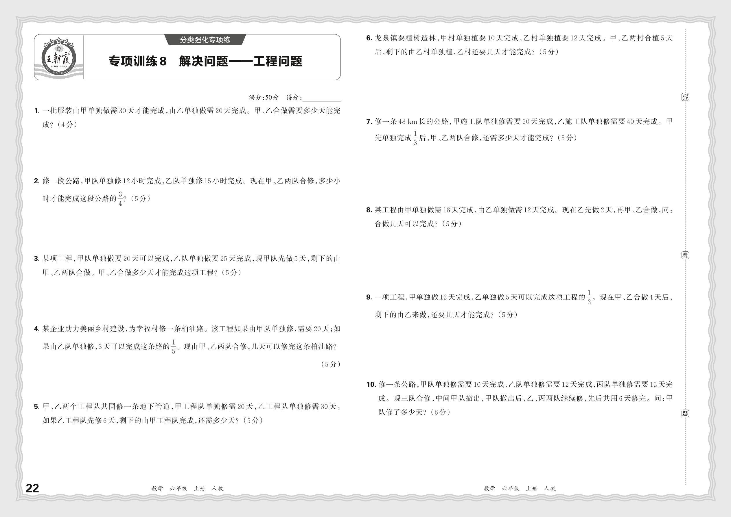 2023秋上册六年级数学人教版 期末专项·解决问题——工程问题【8】