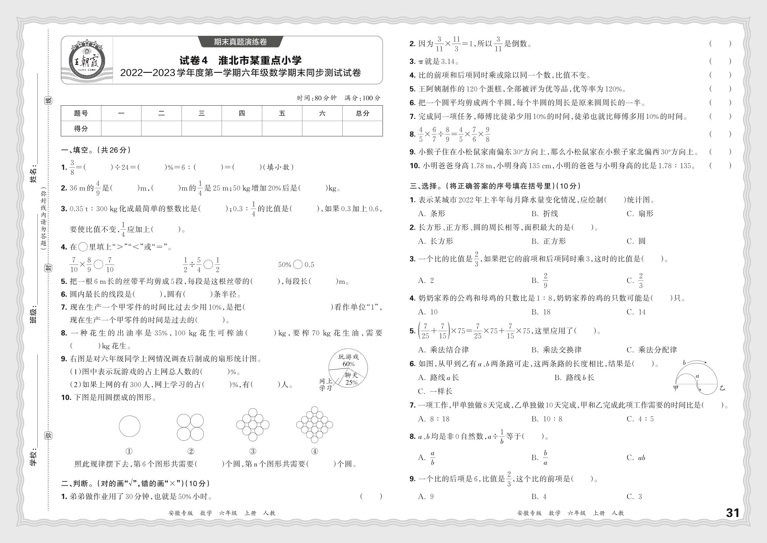 安徽省淮北市某重点小学2022—2023学年度第一学期六年级数学期末同步测试试卷(人教版)【4】