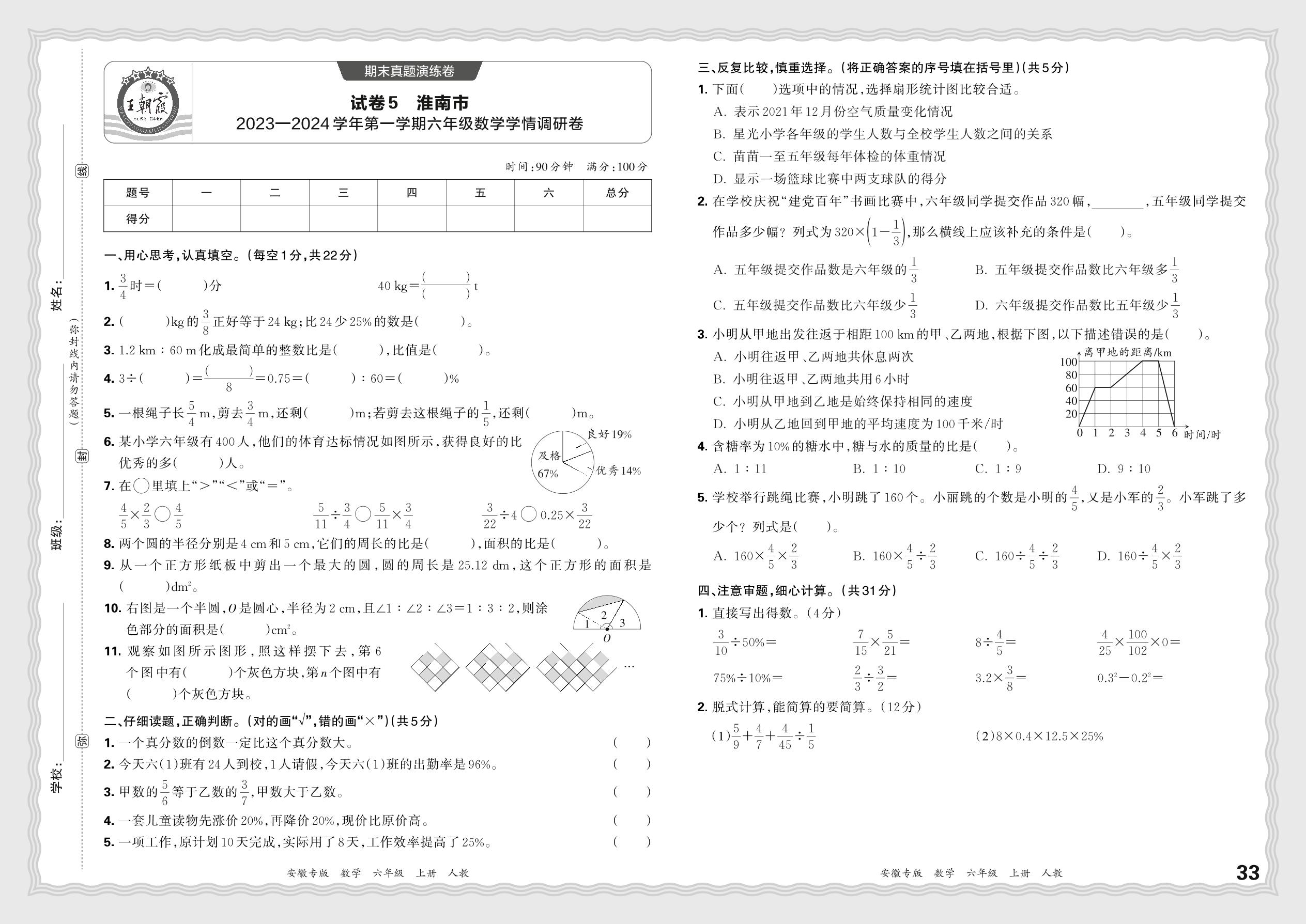 安徽省淮南市2023—2024学年第一学期六年级数学学情调研卷(人教版)【5】
