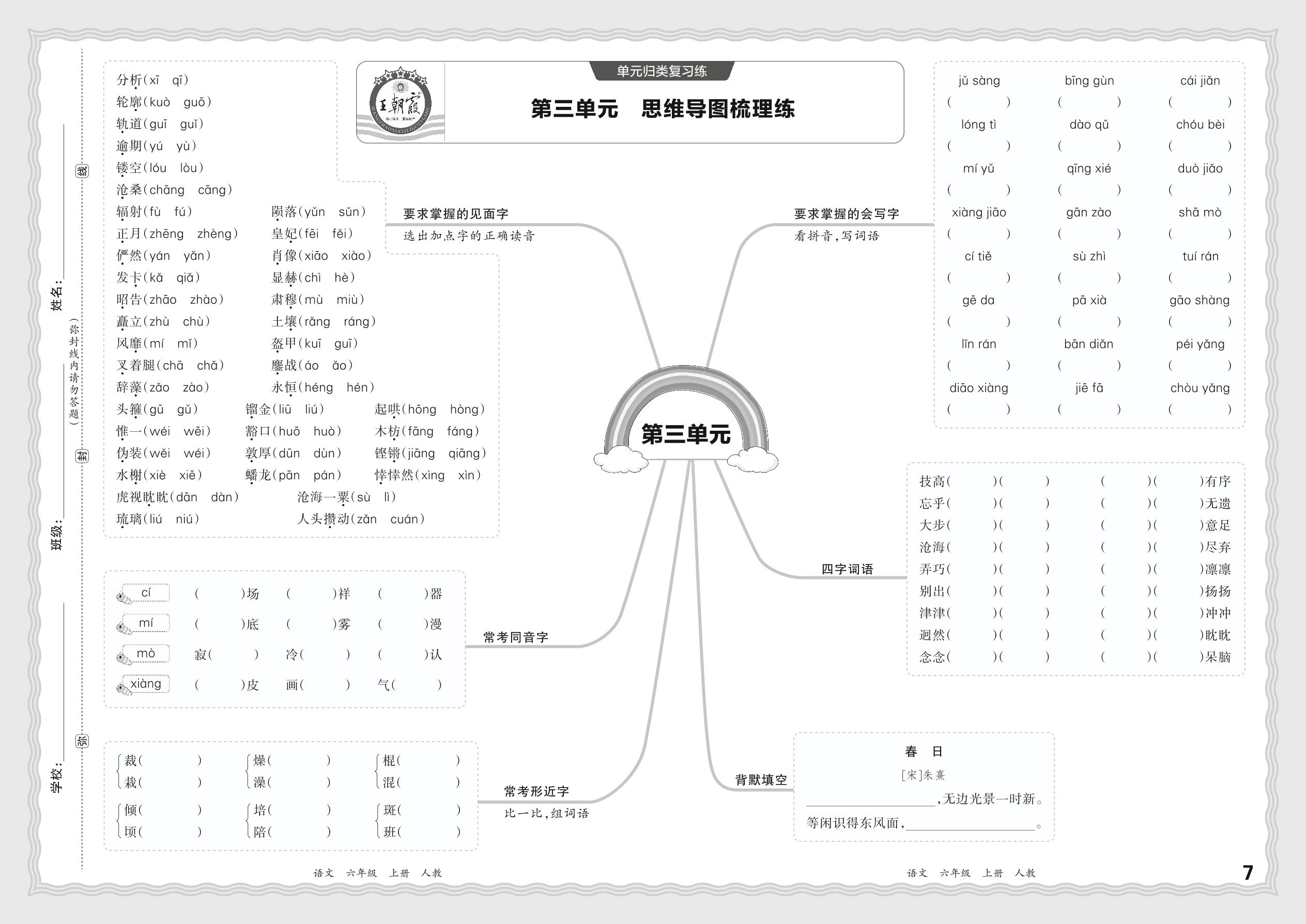2023秋上册六年级语文人教版 期末过课本·单元归类复习练——第三单元