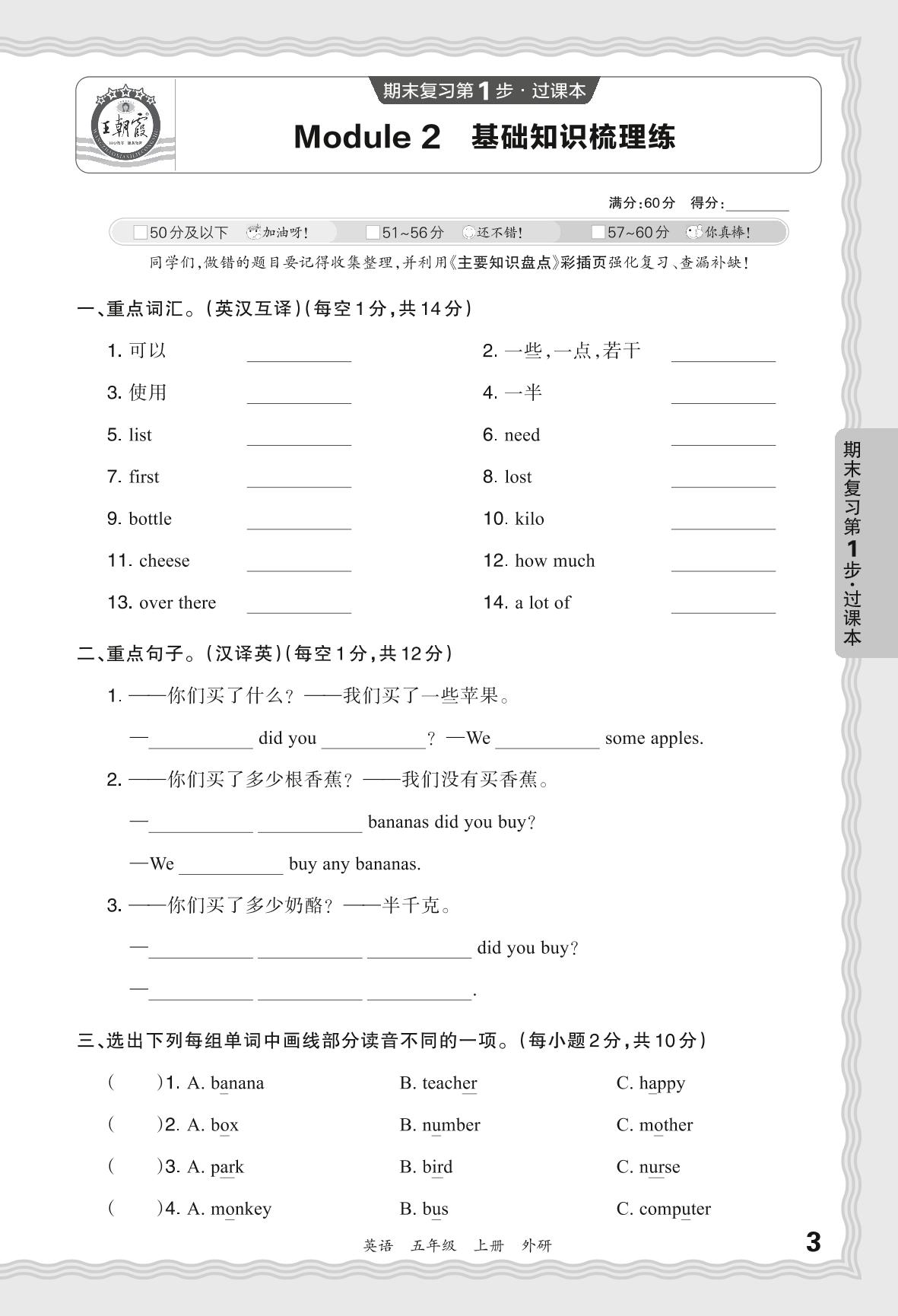2023秋上册五年级英语外研版 期末过课本·Moudle 2 基础知识梳理练